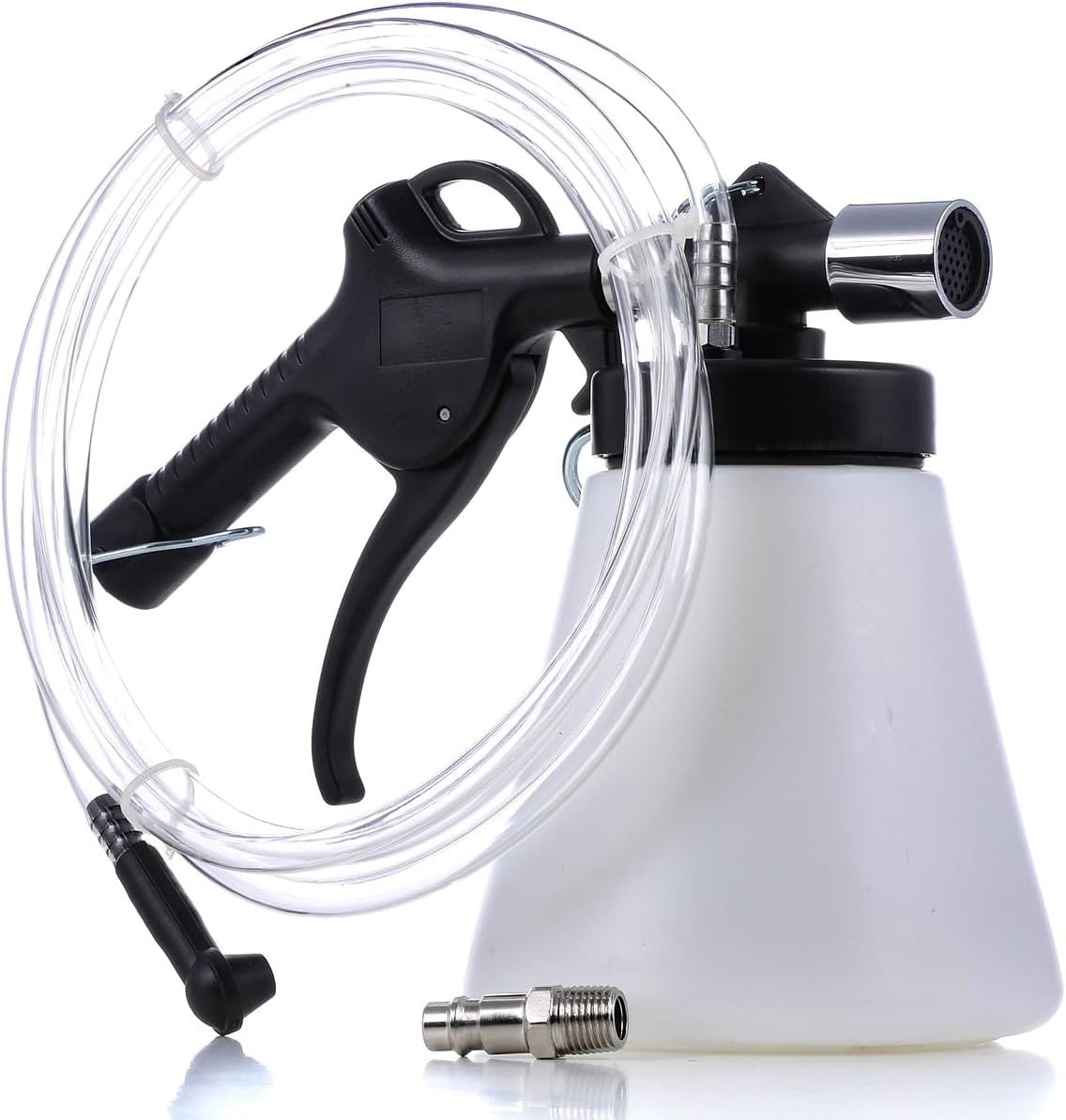- Lieferumfang - Das Set enthält je einen Auffangbehälter, Anschluss zur Druckluftversorgung und transparenten Schlauch zur Überwachung. Spezialschlüssel zur Öffnung des Bremssystems nicht enthalten