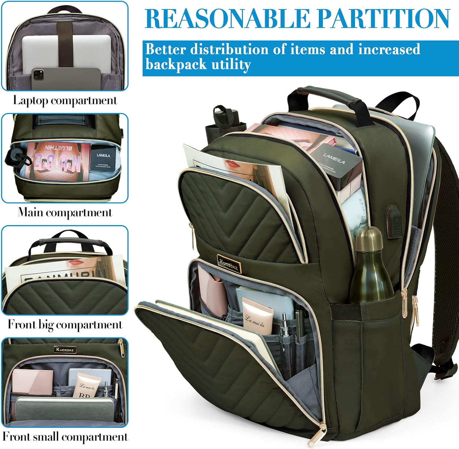 - 【Rucksack mit grosser Kapazität mit Laptopfach】 Die Grösse des Laptoprucksacks von Frau Kuosdaz beträgt 43,30,17,5 CM, 30L. Der Laptop-Rucksack hat vier Fächer und zwei Seitentaschen.1 15,6 Zoll Laptop-Fach. Im Inneren befindet sich ein Hauptfach