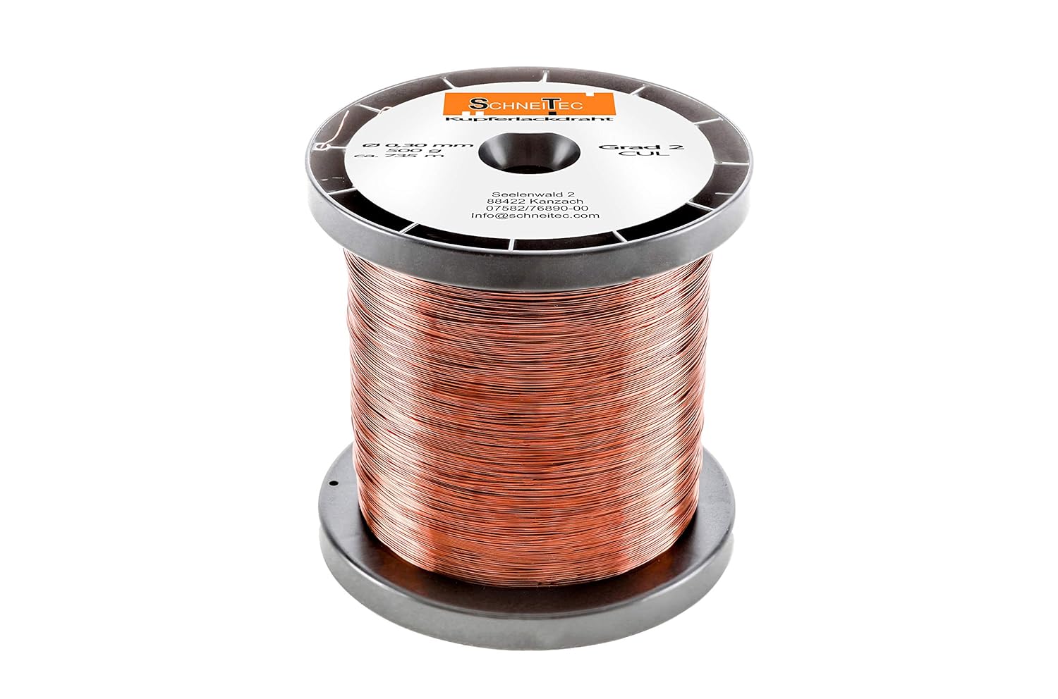 - Typ: W210 / Grad 2 nach IEC 60317-13 | Wärmeklasse: 200°C | 500g / ca. 735 m | Gewicht - nur Kupferleiter ohne Lack - 8,96kg/dm³: 0,6333 kg/km