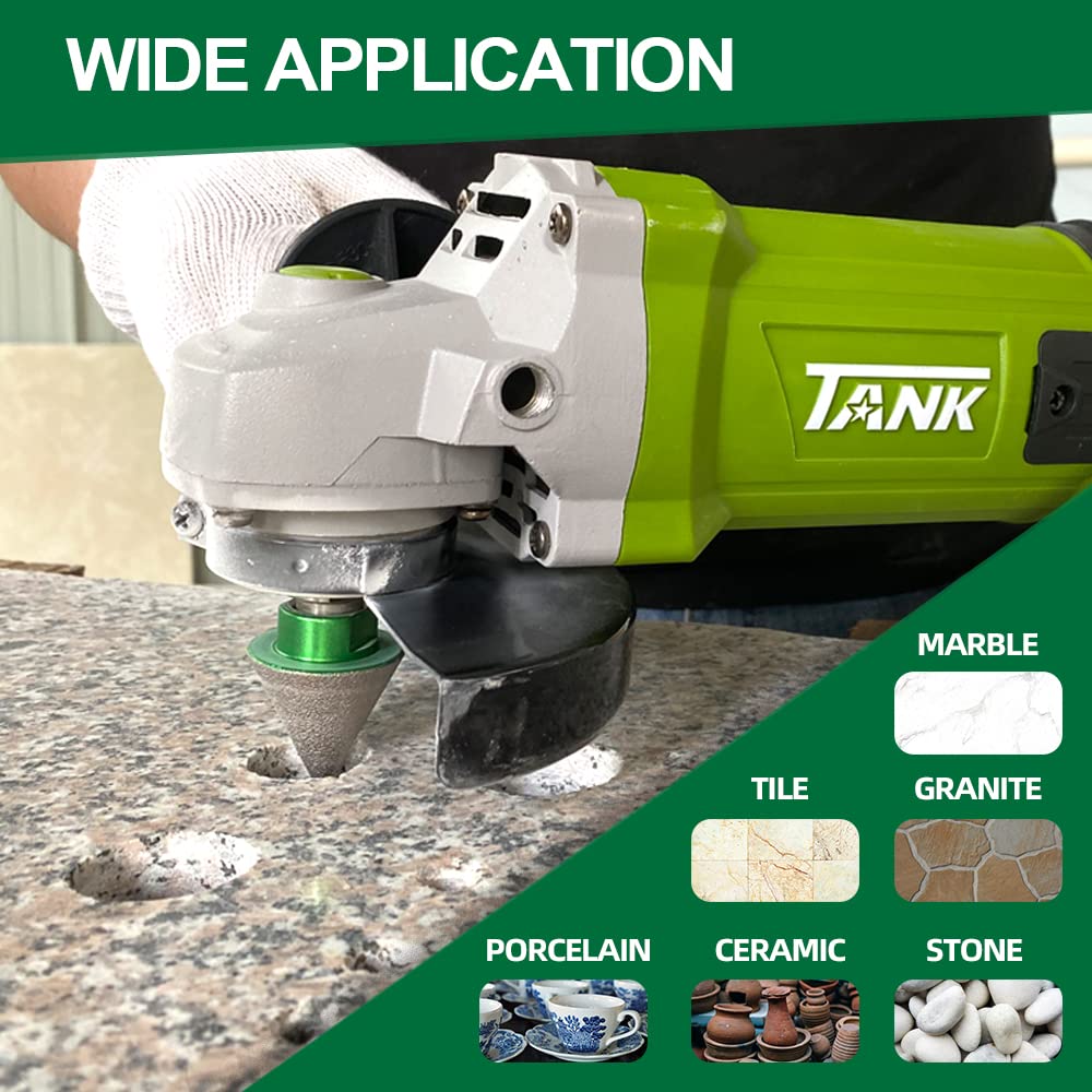 • Voller Premium-Diamanten auf der Arbeitsfläche der Bits: Schnellere Arbeitsgeschwindigkeit, hohe Effizienz, Diamant-Körnung #80/100 hilft, das Risiko von Fliesen-Rissen bei Spannung zu reduzieren, keine gebrochenen Kanten.