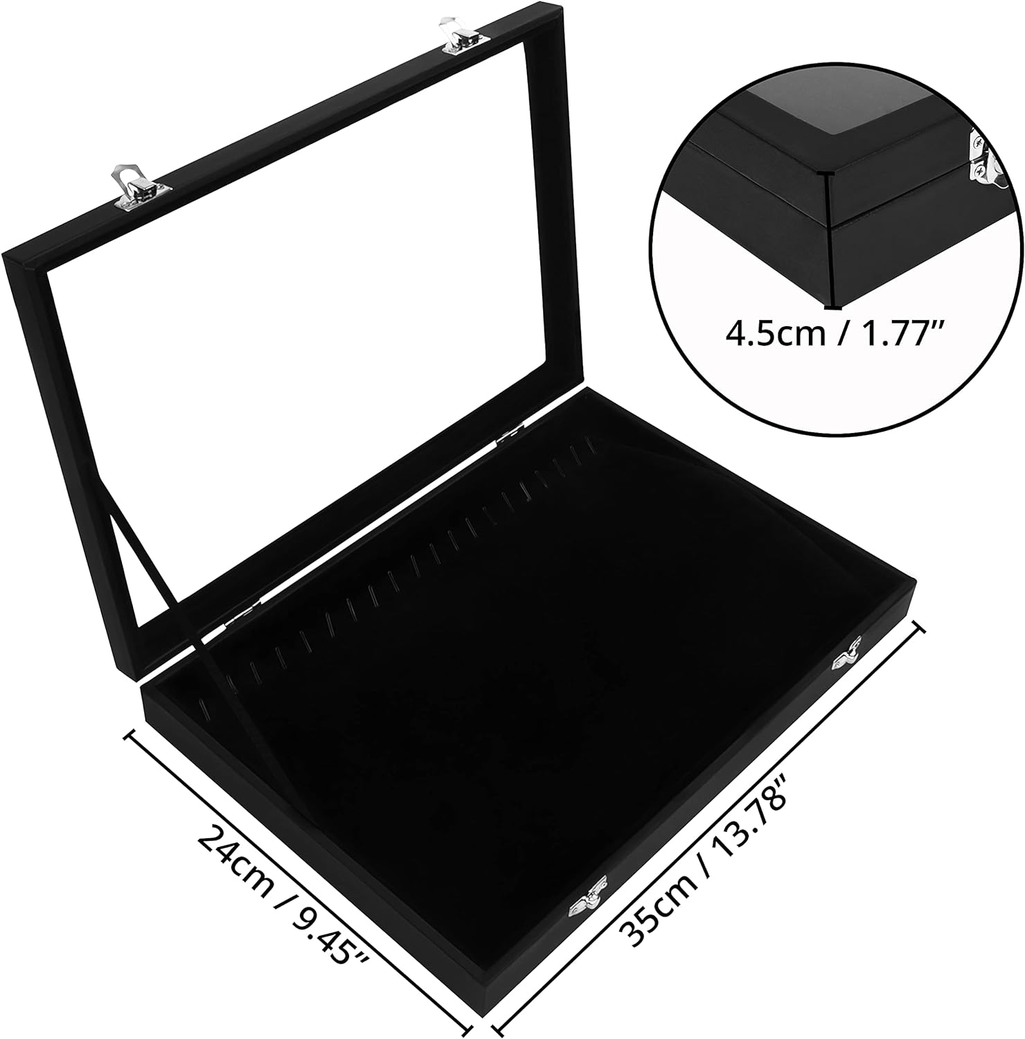 Kurtzy Jewelry Organizer Schmuckkasten Schwarz, Samt Box Glas Deckel Verschliessbar & 20 Haken (2Stk