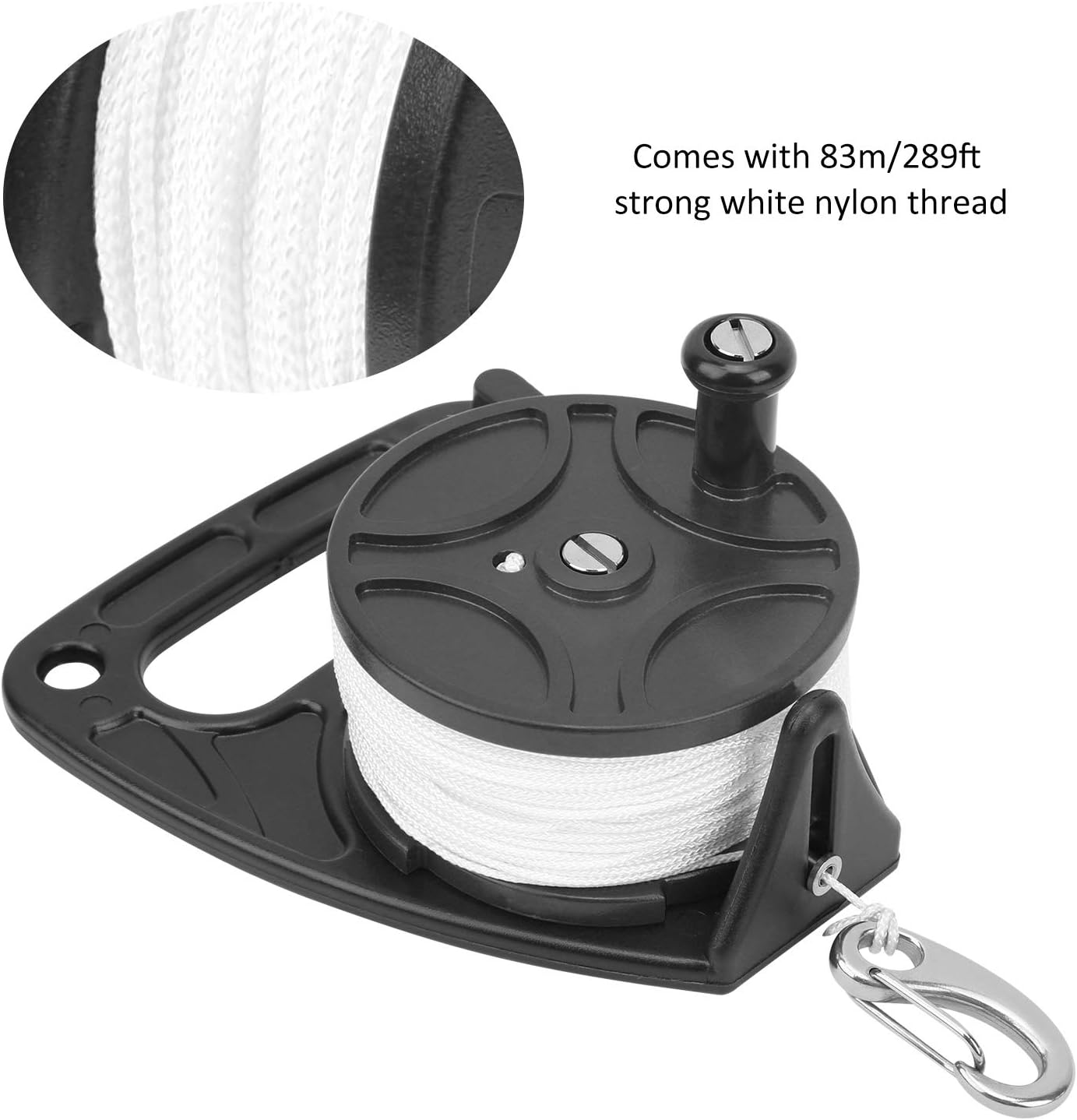 • 【Mehrzweck】 Mehrzweck-Tauchwrack SMB-Tauchspulen-Kajakanker mit 83 m stabiler weisser Nylonschnur und Bolzen zum Einrasten von Daumen-/Fingerstopfen zur Schnurkontrolle.