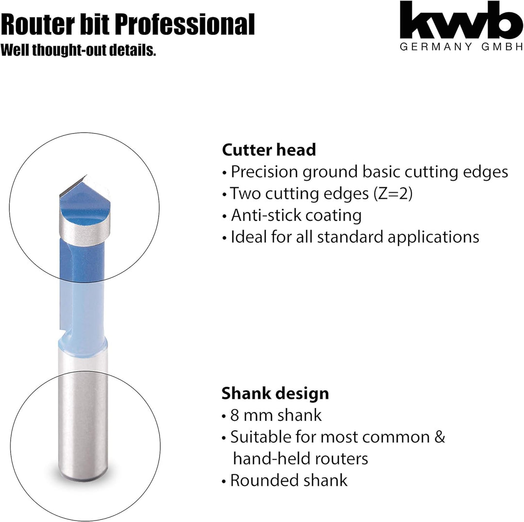 - HARTMETALLBESTÜCKT: Der 2-schneidige kwb Gravierfräser für die Oberfräse verfügt über eine hartmetallbestückte, präzisionsgeschliffene Schneide, die eine sehr hohe Standzeit in harten sowie weichen Hölzern besitzt.