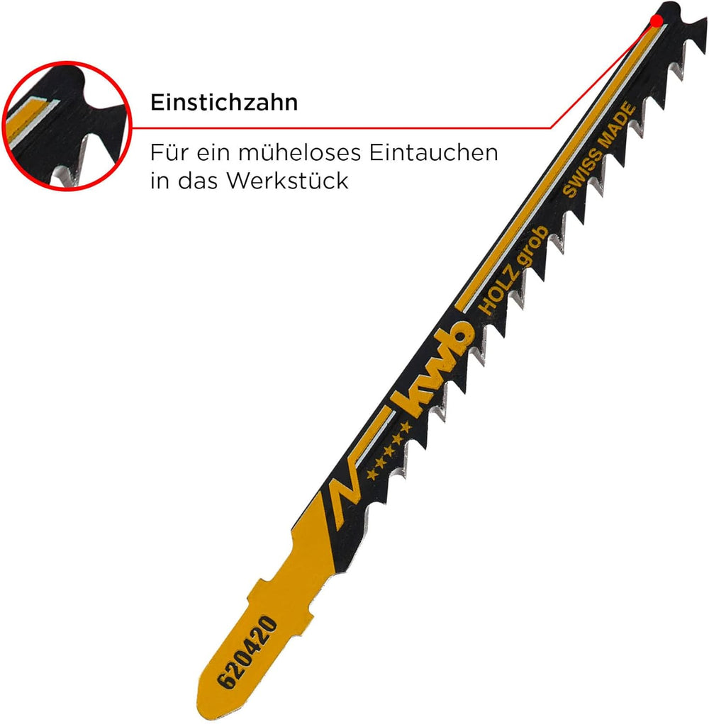 - MIT EINSTICHZAHN: Für ein müheloses Eintauchen in Werkstücke besitzen die kwb Stichsägeblätter einen Einstichzahn.