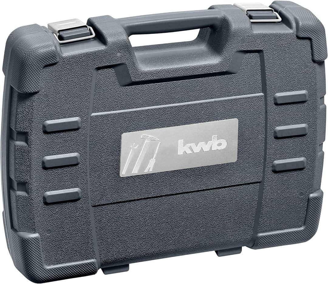 - ROBUSTER HARTKUNSTSTOFFKOFFER: Der kwb Werkzeugkasten befindet sich in einem stabilen, aus bis zu 1 m Fallhöhe stossfesten Koffer aus Hartkunststoff mit kwb Logo-Applikation aus Metall und ergonomischem Tragegriff.