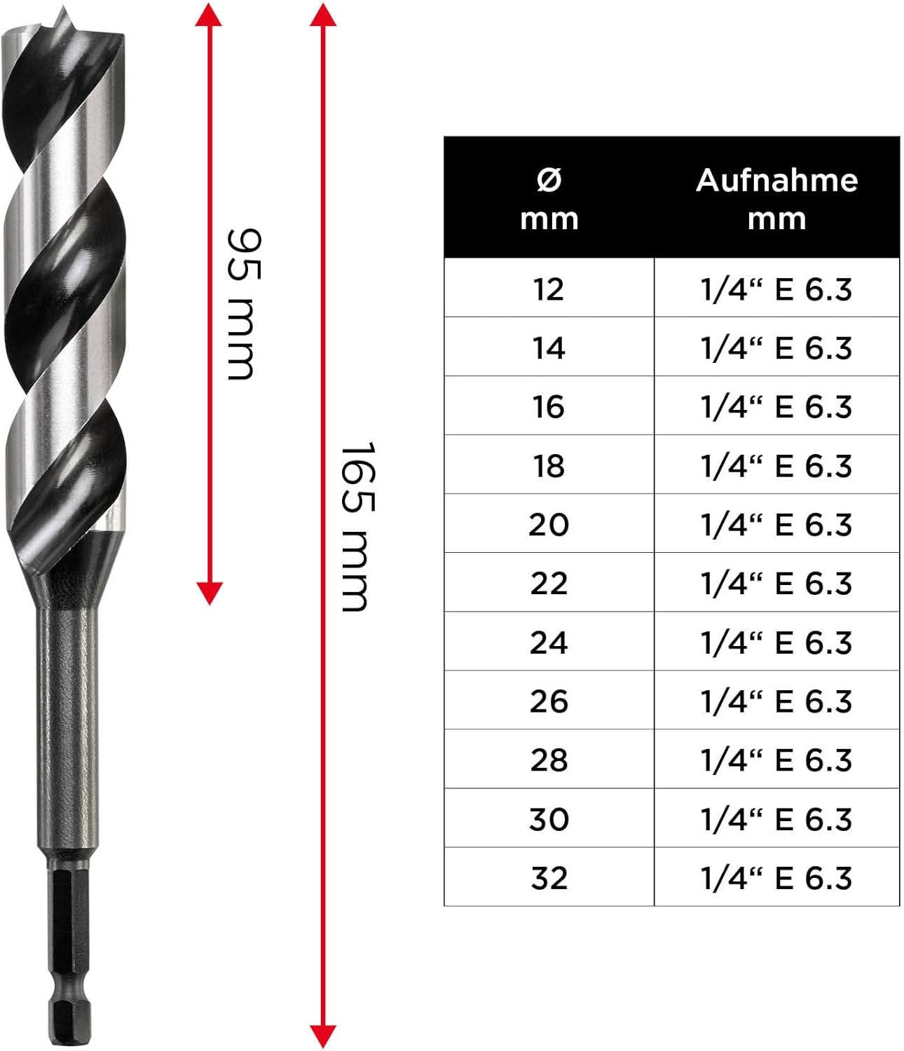 - ZENTRIERSPITZE: Mithilfe der Zentrierspitze ist ein präzises Ansetzen an der Bohrloch-Mitte möglich, sodass der Japan Schlangenbohrer nicht verrutscht.