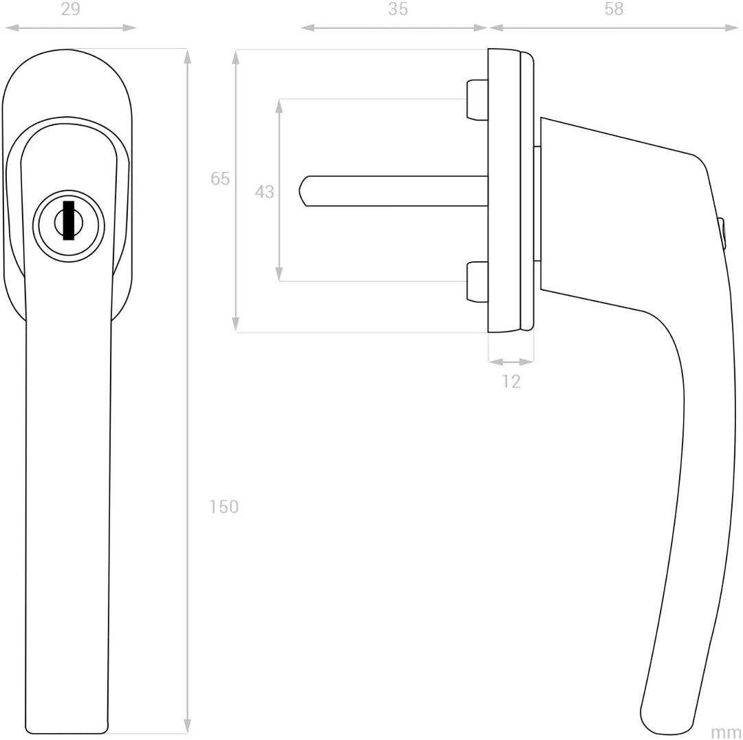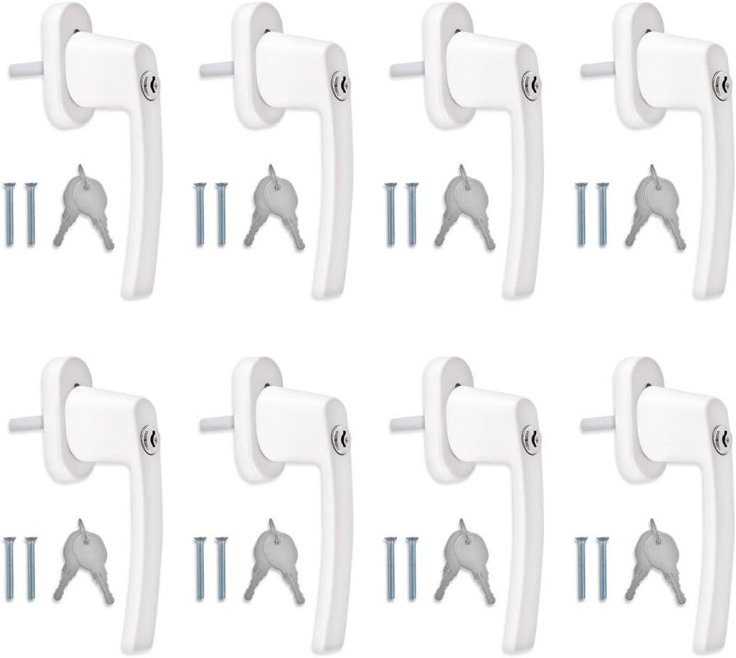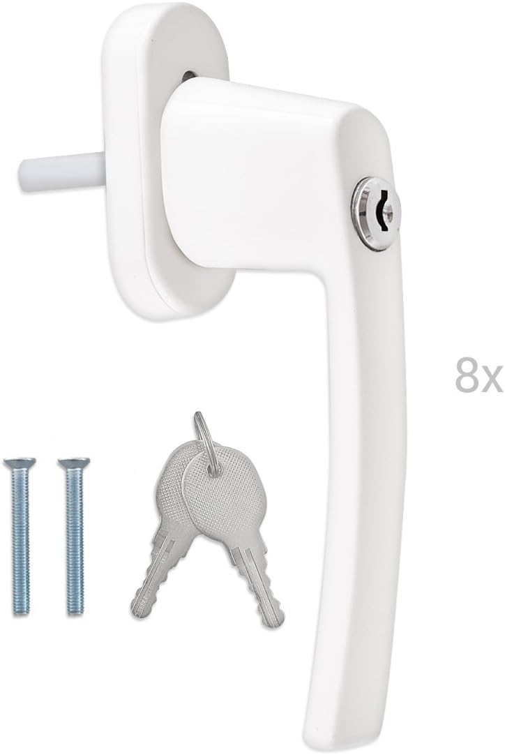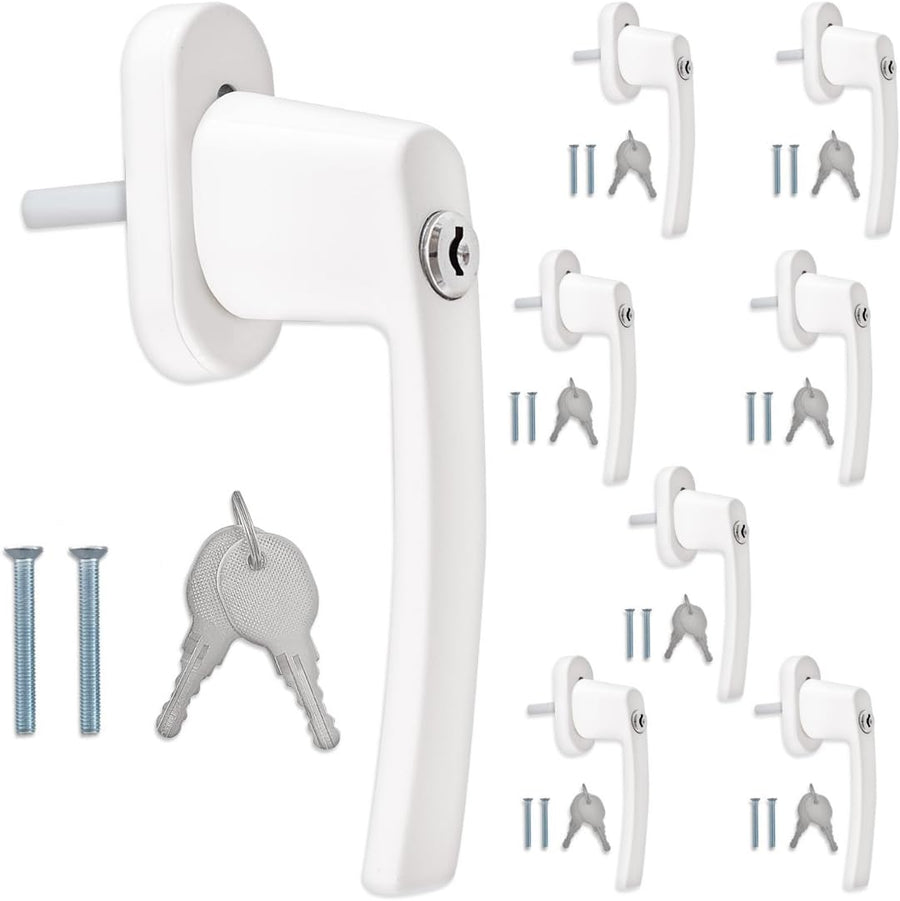 • LIEFERUMFANG UND MAssE: 8x Fenstergriffe, 16x Schlüssel, 16x Oliven Schrauben mit 35mm Stiftlänge; für alle Fenster mit 7mm Vierkantaufnahme geeignet, Schraubenabstand 43mm