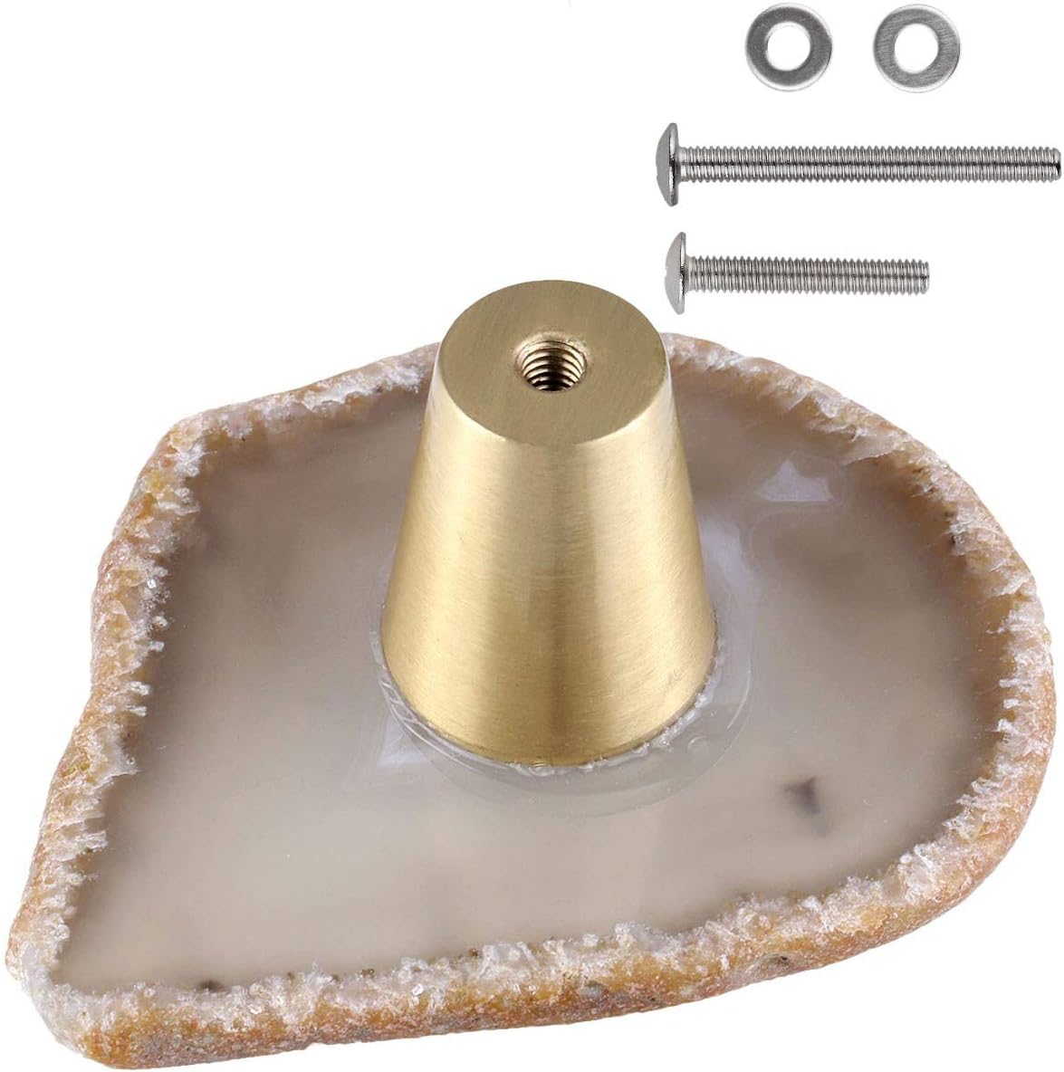 - Material: Des Unregelmässig Schrankknöpfe besteht aus Achat Scheiben und Messing. Das Achat Scheiben sieht sehr hell und schön aussehen, eine einzigartige Ader haben. Messing ist nicht leicht zu rosten, langlebig. Da jedes Achat Scheiben ein Unikat