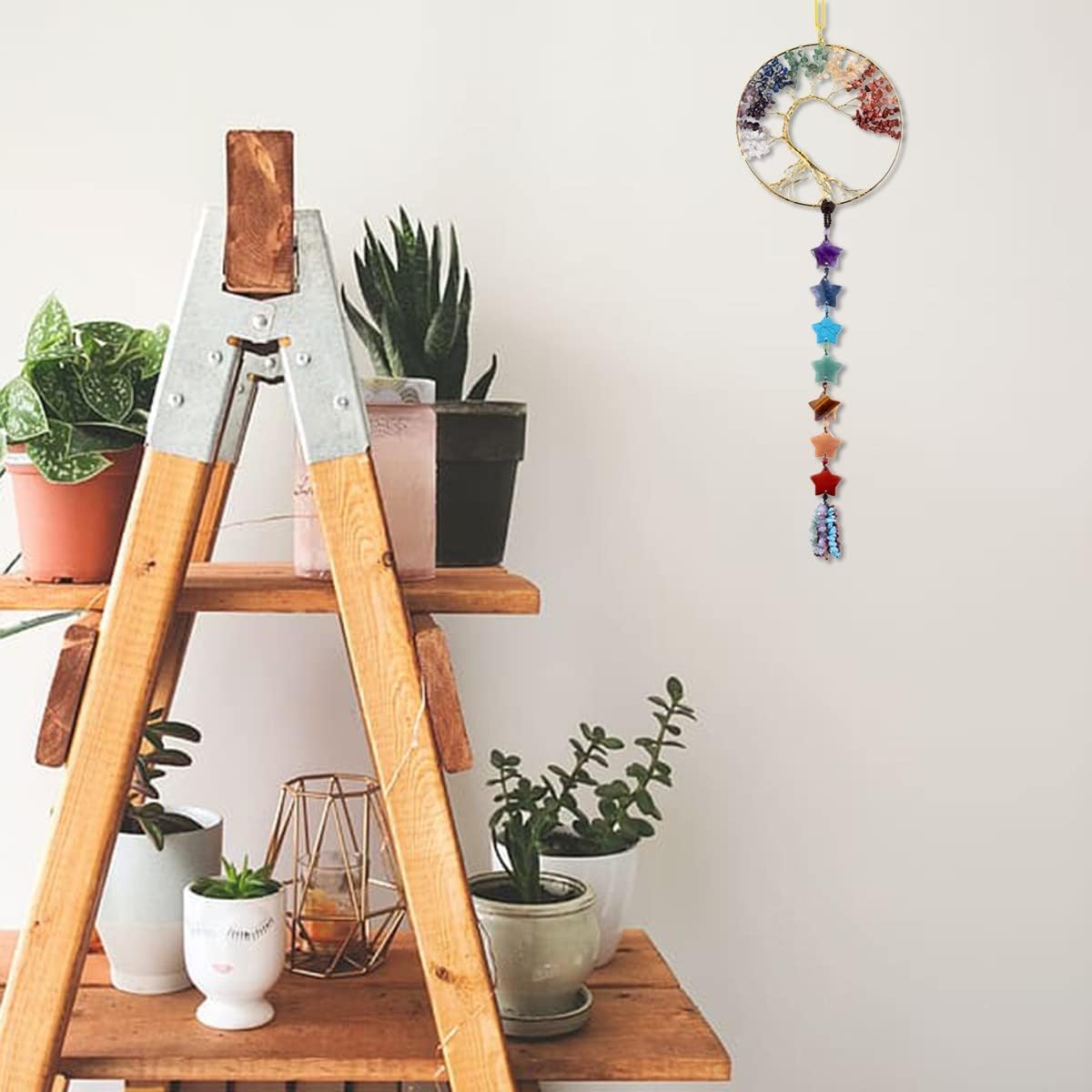 - Kristall Stern Hängen Deko Design: Dieser Edelstein Stern Wand Hängende Ornament besteht aus Hand Gewickelt 7 Chakren Stein Stern, 7 Chakren Runde Perlen und 7 Chakren Trommelsteine Quaste. Die Handwerker müssen viel Zeit aufwenden, um Irregulär