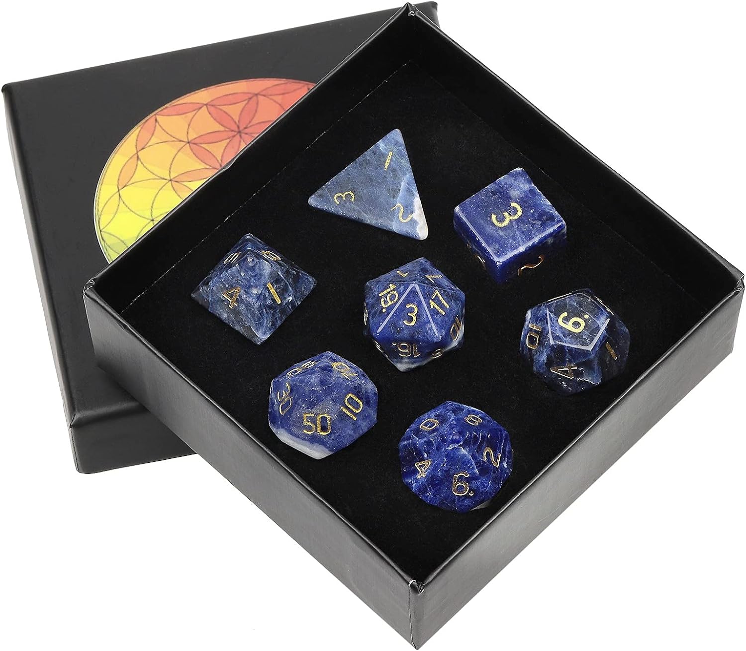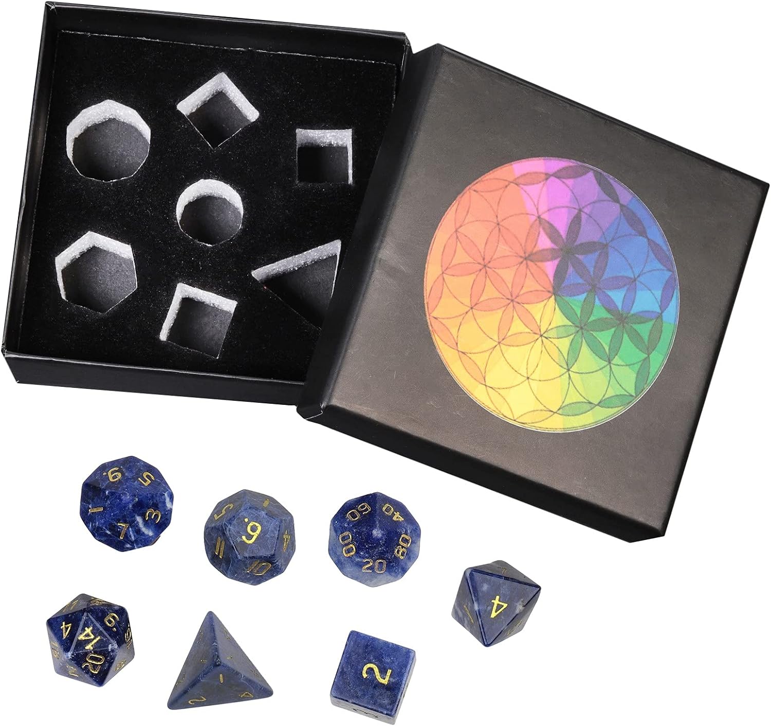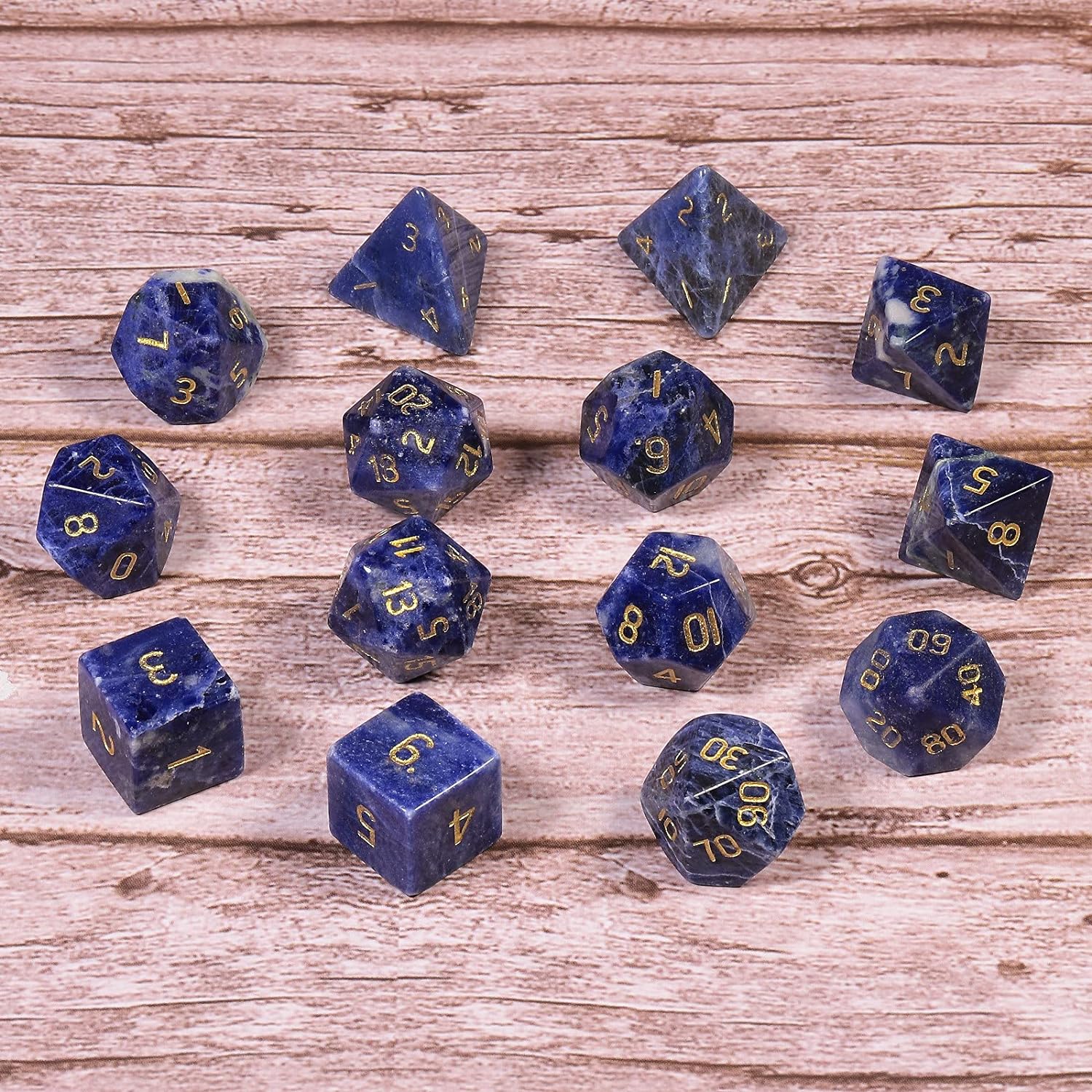 - 7 Würfel Set: 7 Stück Stein Würfel, verpackt mit einer Geschenkbox und einem KYEYGWO Geschenktasche, enthalten D4*1, D6*1, D8*1, D10*1(00-90 und 0-9), D12*1, D20*1. Jeder Würfel ist aus Kristallen handgefertigt und ein Unikat, daher weichen Farbe und