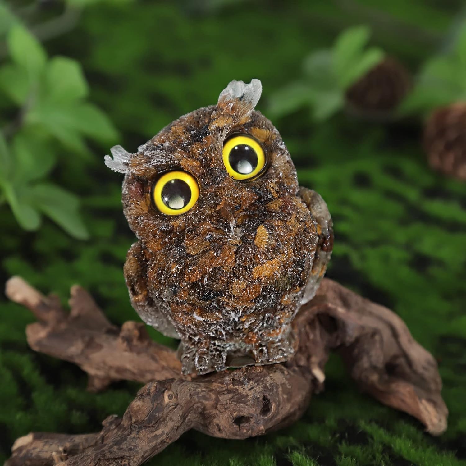 - Niedliche Stein Eulen Statuen: Die Kristall Käuzchen Figur ist exquisit gestaltet mit hübschen Texturen. Es gibt Kristallsteine in dem Harz, energetisch und schön. Die hellen Glas Augen verleihen diesen niedlichen Figuren feine Details und machen sie