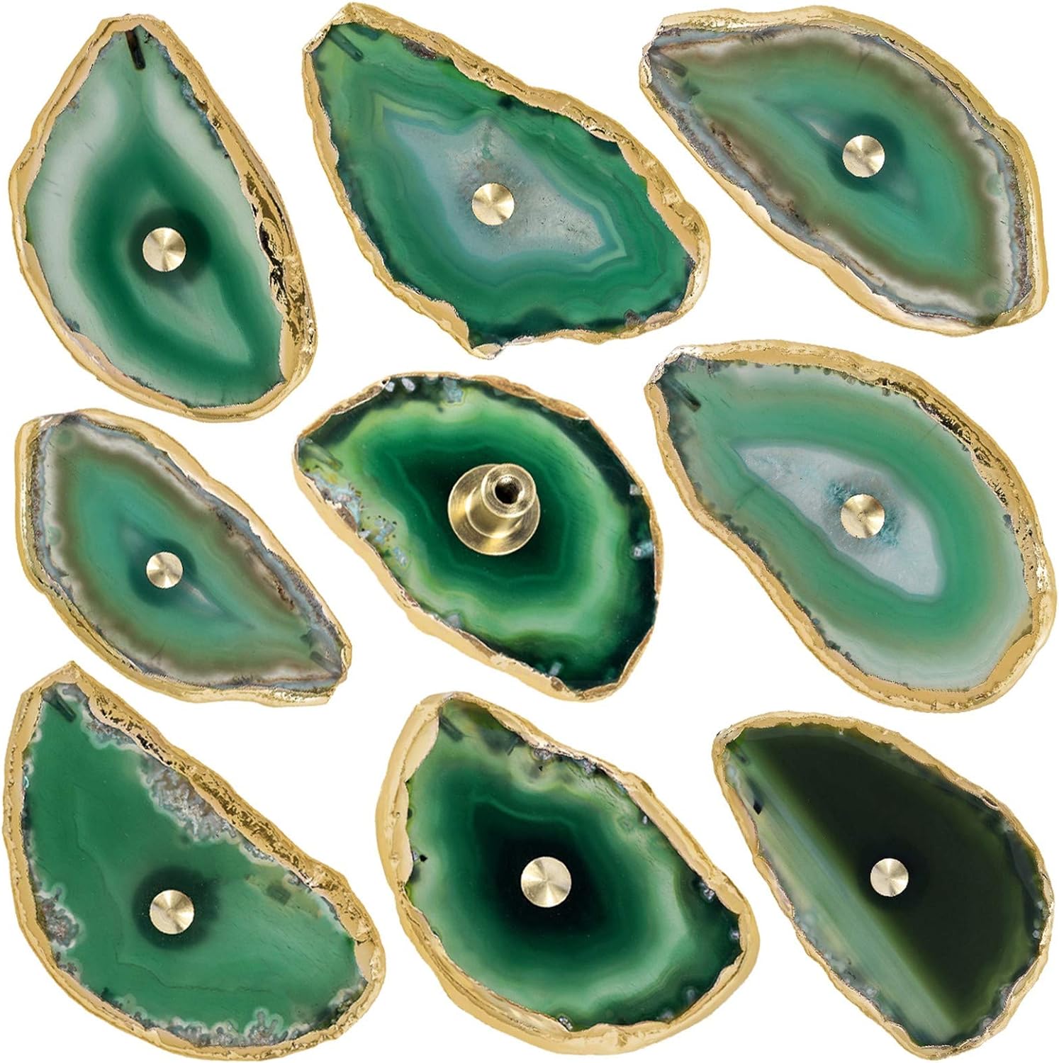 - Haltbar Messing Möbelknöpfe: Des Unregelmässig Schrankknöpfe besteht aus Achat Scheiben und Messing. Das Achat Scheiben sieht sehr hell und schön aussehen, eine einzigartige Ader und Gestalten haben. Messing ist nicht leicht zu rosten, langlebig. Da