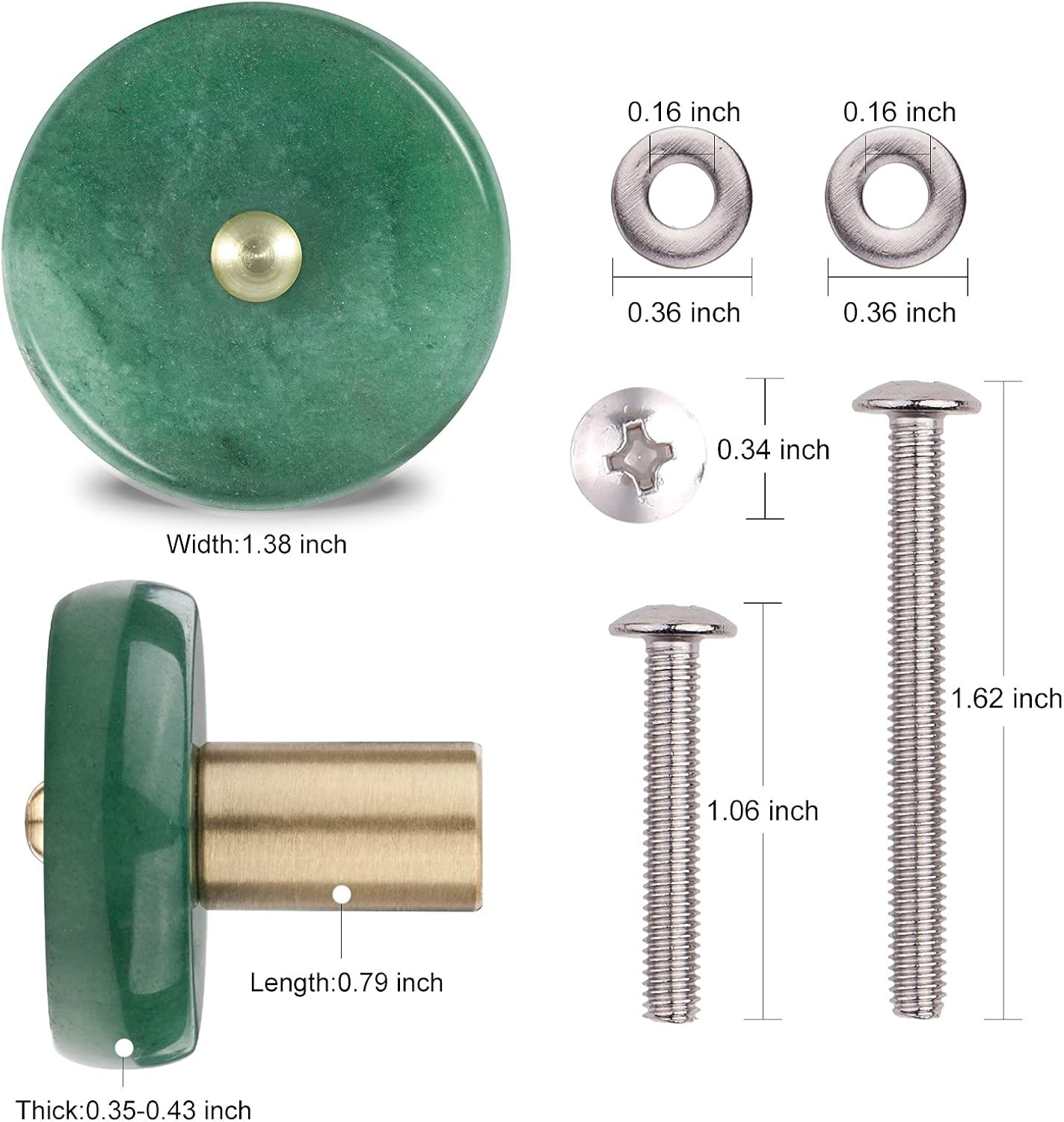 - Runde Schubladenknöpfe Grösse: Der Durchmesser des Runde Stein beträgt 3,5 cm, Dicke 0,9-1,1 cm. Messing Ziehgriff Länge 2 cm, Breite 1,2 cm. Gewicht: 45-55 g/ Stück. Paket enthält: 4* Runde Möbel Ziehgriffe, 4* 2,7 cm Schrauben, 4* 4,1 cm