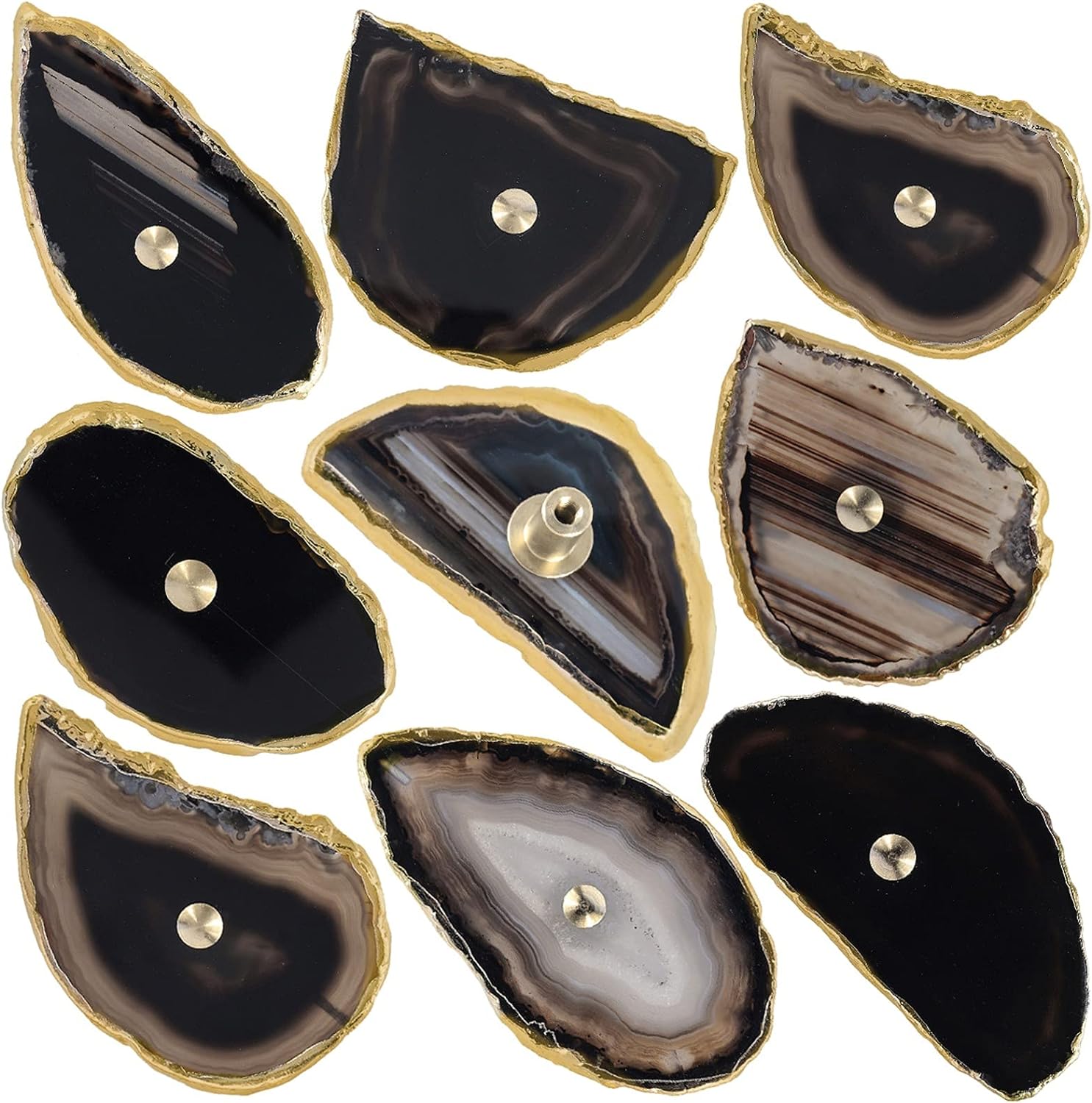 - Haltbar Messing Möbelknöpfe: Des Unregelmässig Schrankknöpfe besteht aus Achat Scheiben und Messing. Das Achat Scheiben sieht sehr hell und schön aussehen, eine einzigartige Ader und Gestalten haben. Messing ist nicht leicht zu rosten, langlebig. Da