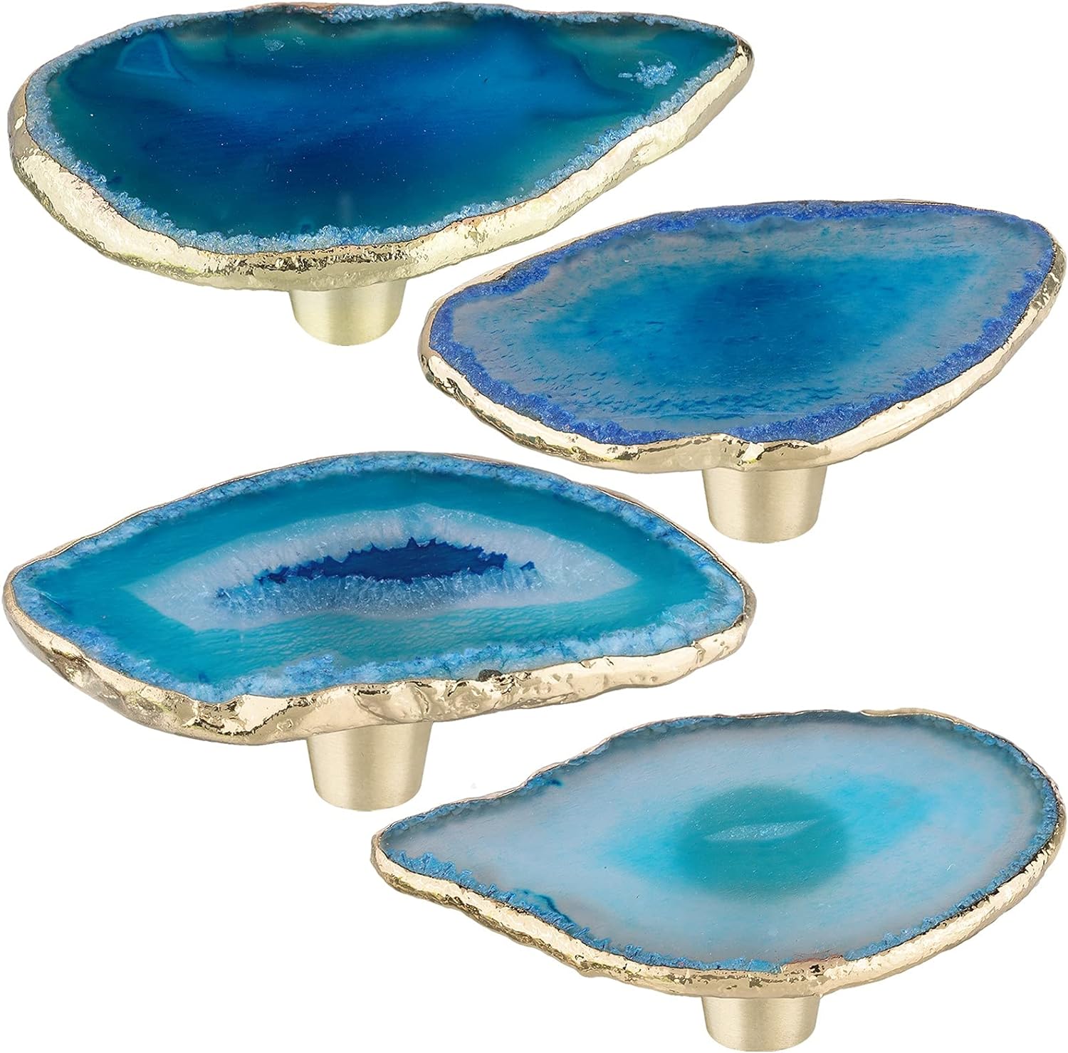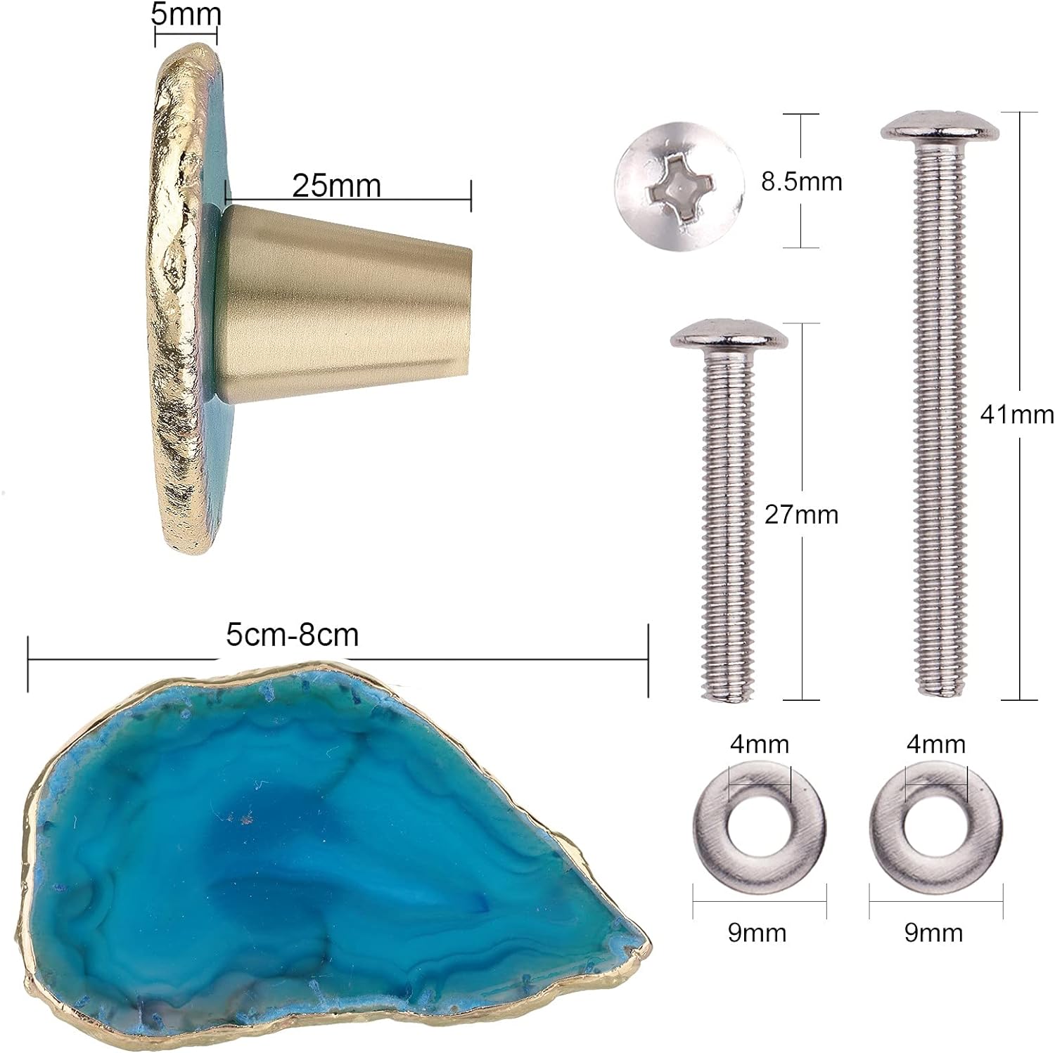 KYEYGWO 4 Stück Unregelmässig Achat Scheiben Möbelknöpfe, Polierte Achate Edelstein Schubladenknöpfe