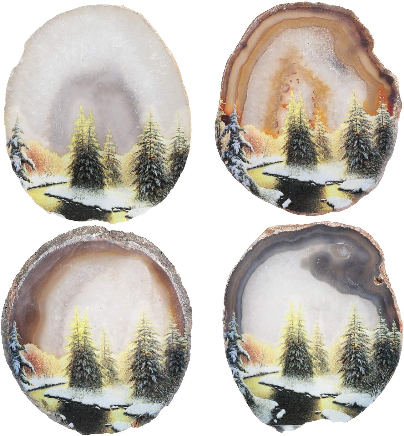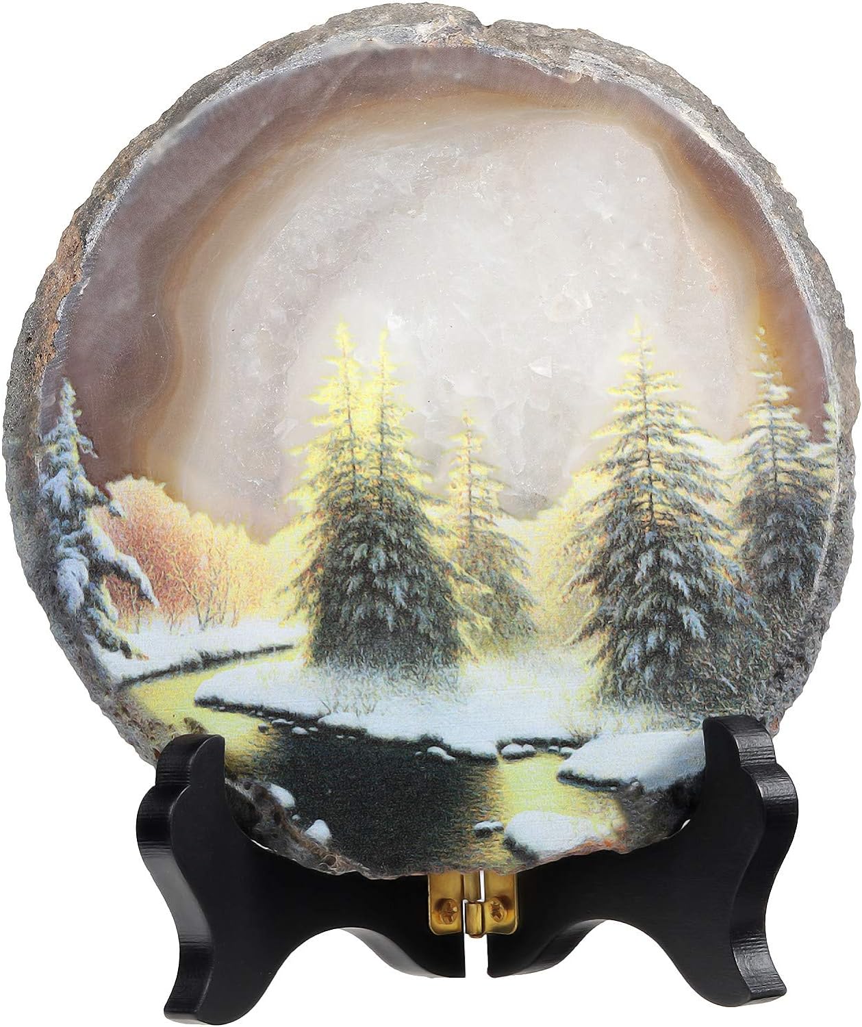 - Elegante und Exquisite Stein Ornament: Auf die Achatscheiben sind exquisite Schneeszenen gemalt, die eine starke festliche Atmosphäre schaffen. Das Design ist einzigartig und als Ornament sehr individuell. Es kann Ihrem Büro, Schlafzimmer, Wohnzimmer,
