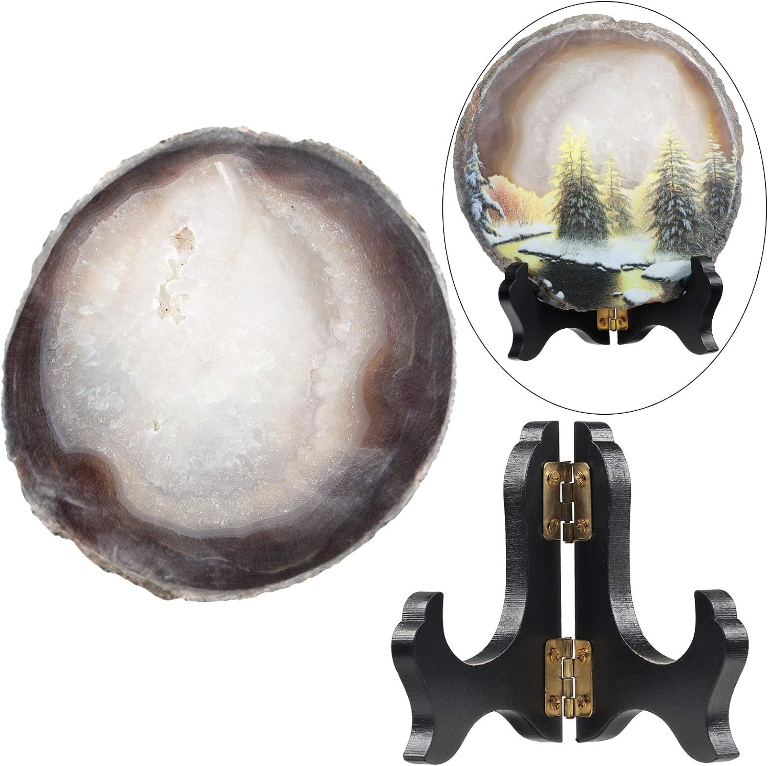 - Natürlich Achat Scheiben Ornament Grösse: Achatstück: 10x10 cm -12x14 cm, Dicke 7-10 mm, Gewicht ca. 160-300 g. Der Holz Ständer ist 7.5 cm hoch, 5.6 cm breit. Das Gesamtgewicht beträgt ca. 180-320 g. Paket: 1 * Achat Scheiben Dekoration, 1 * Holz