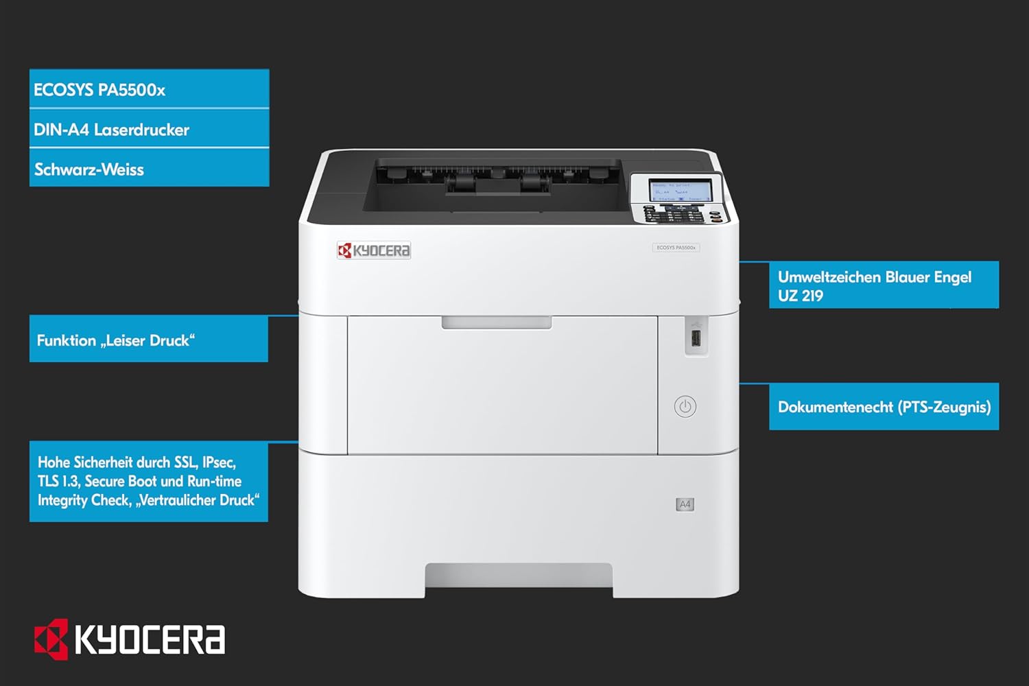 - Zuverlässig: Der professionelle Ecosys Laserdrucker Schwarz Weiss druckt bis zu 50 A4 Seiten/Minute und ist ideal für den Einsatz in Büroumgebungen wie (Home)Office, Praxis oder Kanzlei