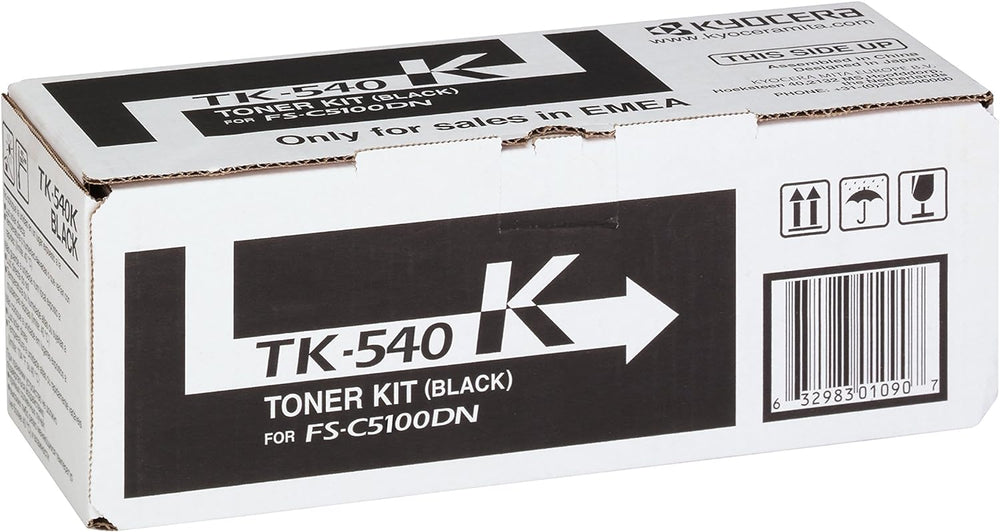 - Lieferumfang: Kyocera 1T02HL0EU0–0T2HL0EU TK-540K Tonerkartusche Schwarz in Originalverpackung mitsamt einer Installationsanleitung sowie einer Entsorgungstüte für die leere Tonerkartusche