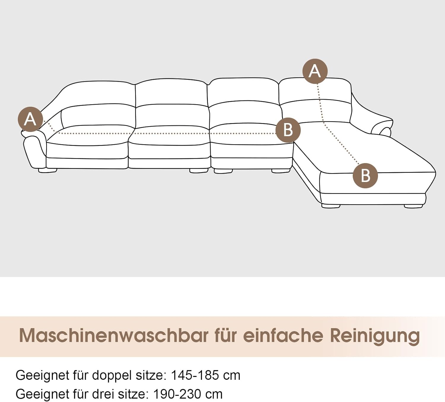 • 【3 + 2 Sitze】Dieses Sofabezug L Form ist 3 + 2 Sofa-Design; 2 Sitze sind ungefähr 140 bis 185 cm; 3 Längen sind etwa 190 bis 225 cm; mit guter Duktilität kann es Ihr Sofa perfekt abdecken Eckecke fallen, schützen Sie Ihr Sofa