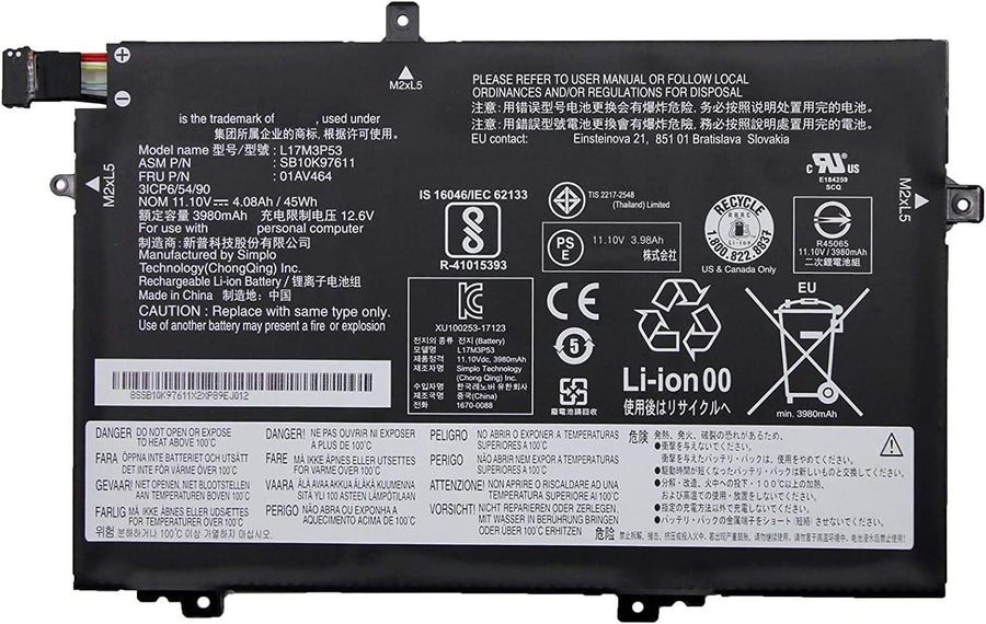 - Kompatible Teile-Nr.: L17L3P52 SB10K97610 01AV463 L17M3P53 SB10K97611 01AV464 L17M3P54 SB10K97612 01AV465 L17C3P52 SB10K97613 01AV466