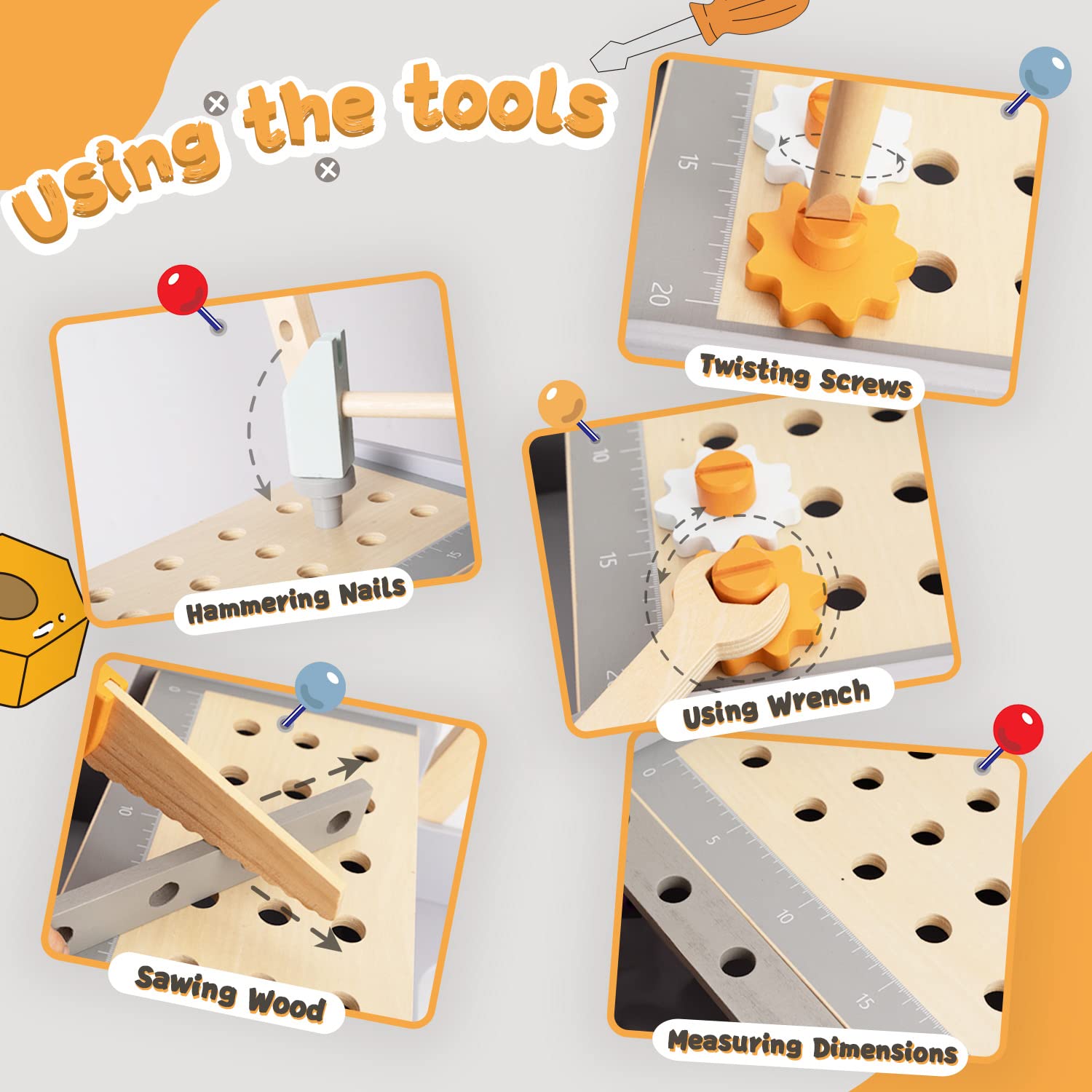 - Werkzeug-Tisch für Kleinkinder: Dieser Wagen wird mit einer Fülle von Werkzeugen und Zubehör, Hämmern, Schraubenschlüsseln, Sägen, Schraubenziehern, Muttern, Bolzen und vielem mehr geliefert, so dass die Kinder alle Teile verwenden können, um eine