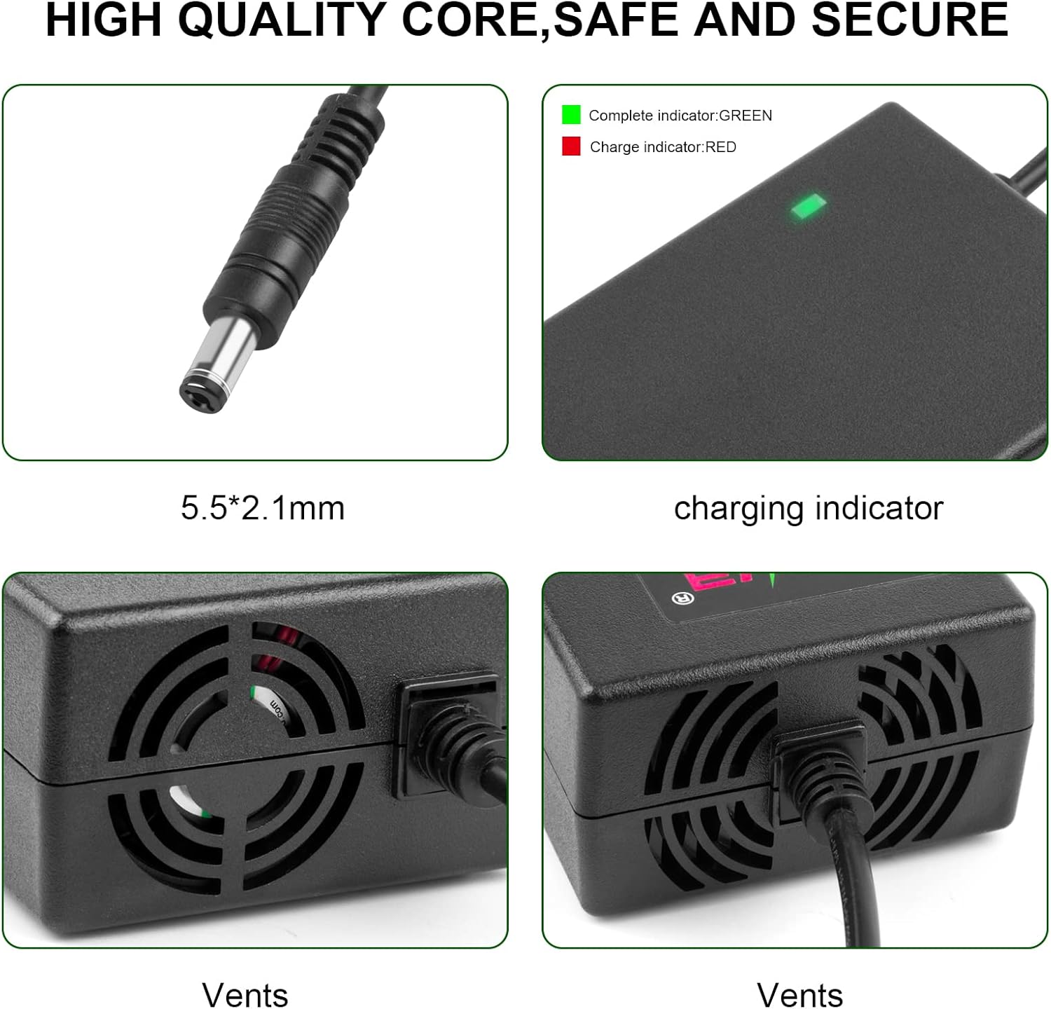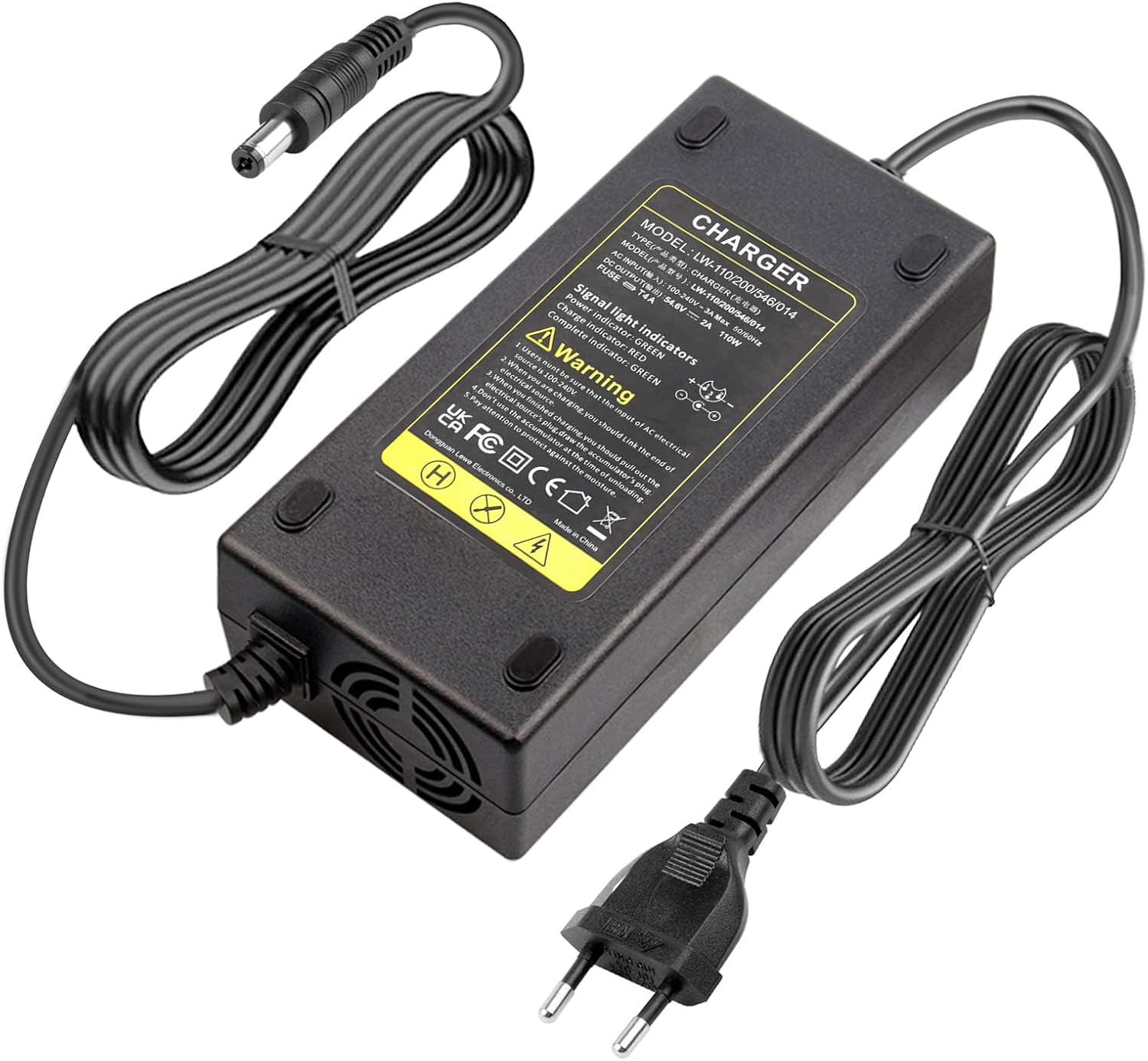 • 【Batterieladegerät 48V 2A】Ausgang: 54.6V 2.0A, Eingang: AC 100-240V; Maximale Leistung: 135W; Kabellänge: 2M; Steckergrösse: 5.5 x 2.1 mm (Aussendurchmesser X Innendurchmesser); Hinweis: 48V ist die Batteriespannung und 54.6V ist die Ladespannung.