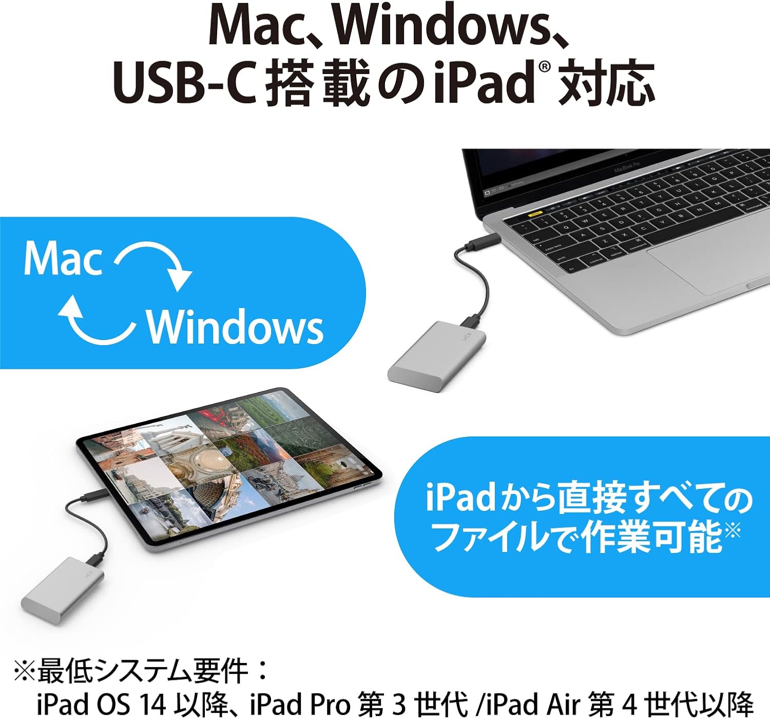 - Dank USB-C-Kompatibilität können Sie Fotos und Videos mühelos von Ihrem iPad übertragen, dessen Speicher frei halten und direkt über das iPad an Dateien arbeiten.