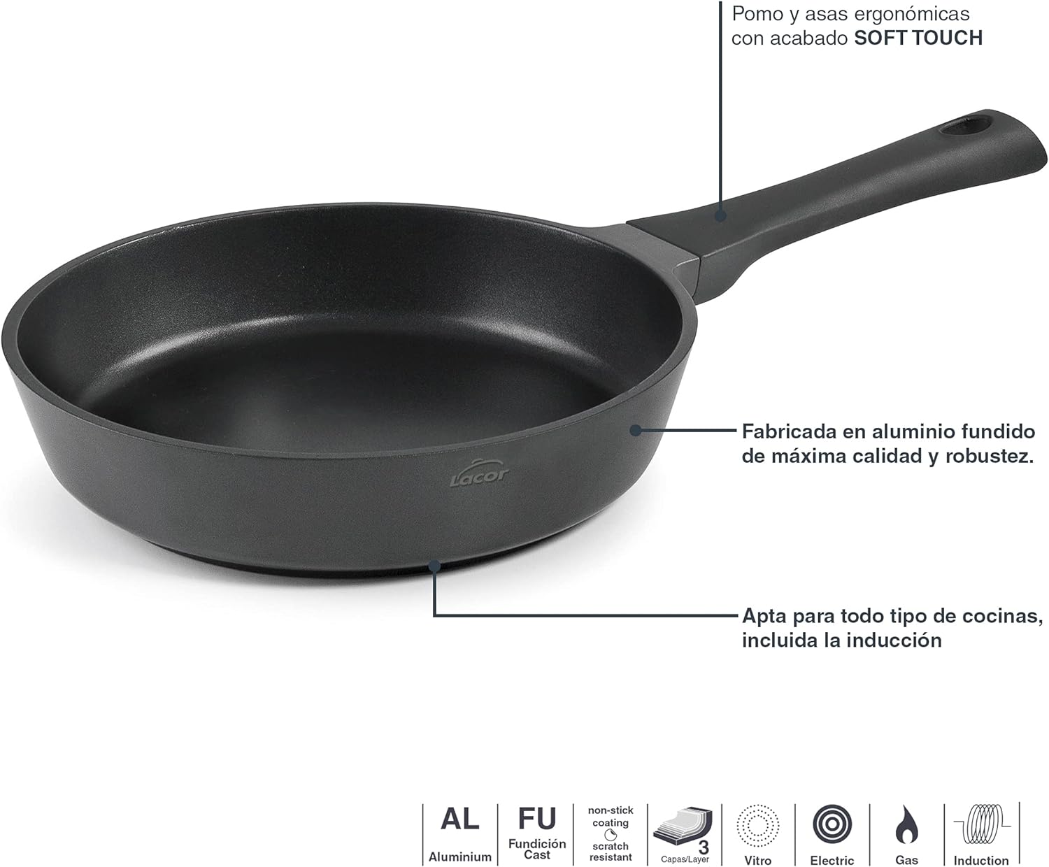 - Die Pfanne ist aus einem Stück gefertigt, sehr robust und langlebig dank des Gehäuses aus Aluminiumguss