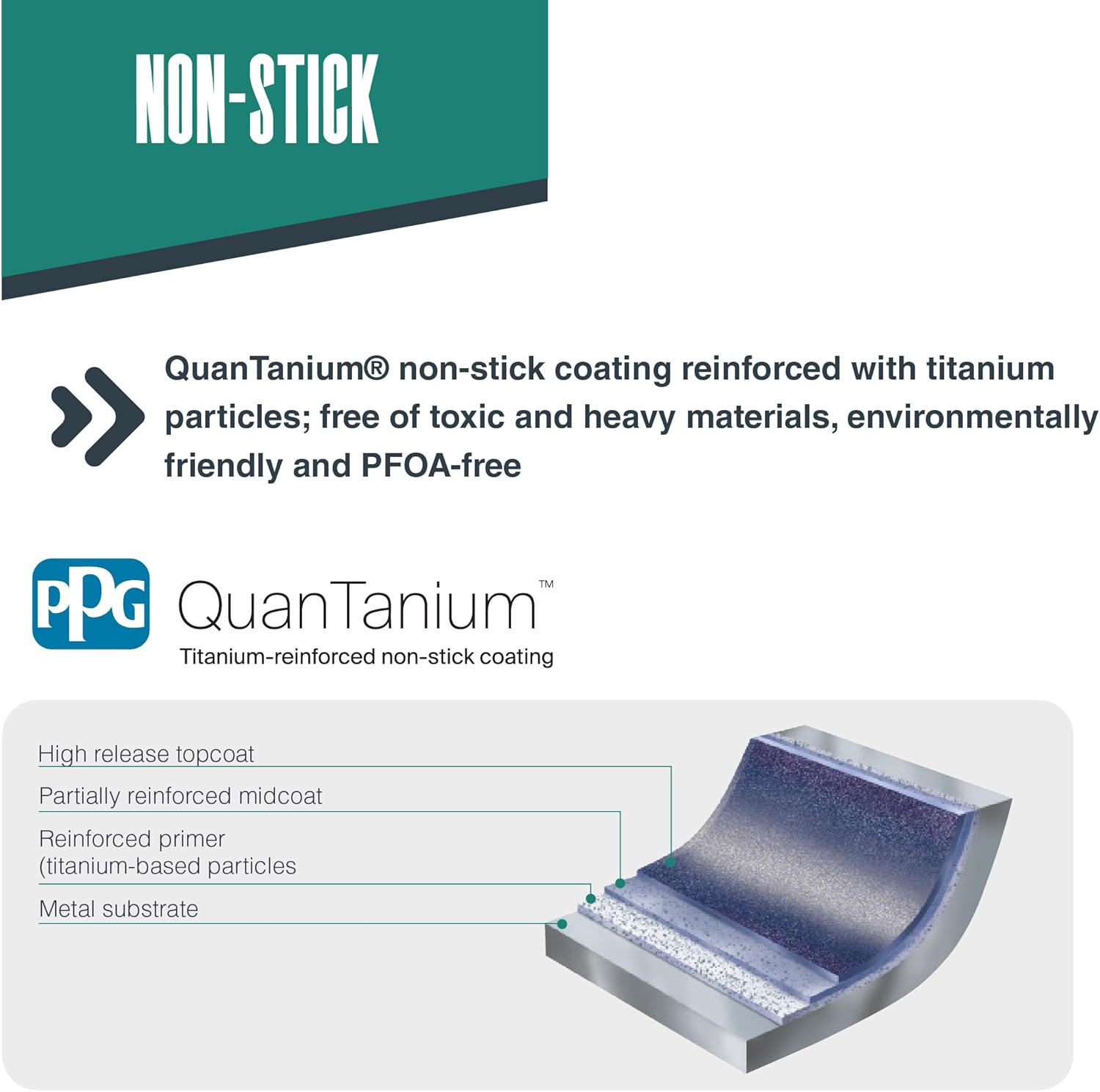 - Titanverstärkte QuanTanium-Antihaftbeschichtung, frei von PFOA, Giftstoffen und schweren Materialien.