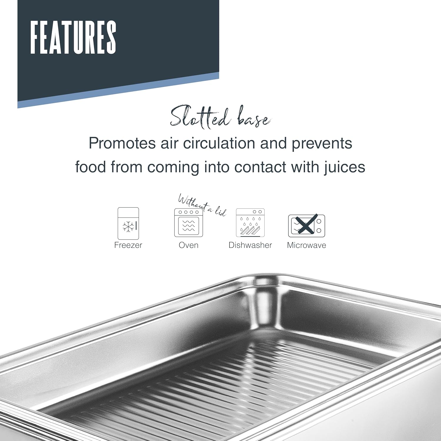- Gerillter Boden für sauberes Garen: Fördert die Luftzirkulation und verhindert den direkten Kontakt von Lebensmitteln mit Säften oder Fetten, wodurch gesündere, homogenere Ergebnisse und eine optimale Textur bei jeder Zubereitung erzielt werden.