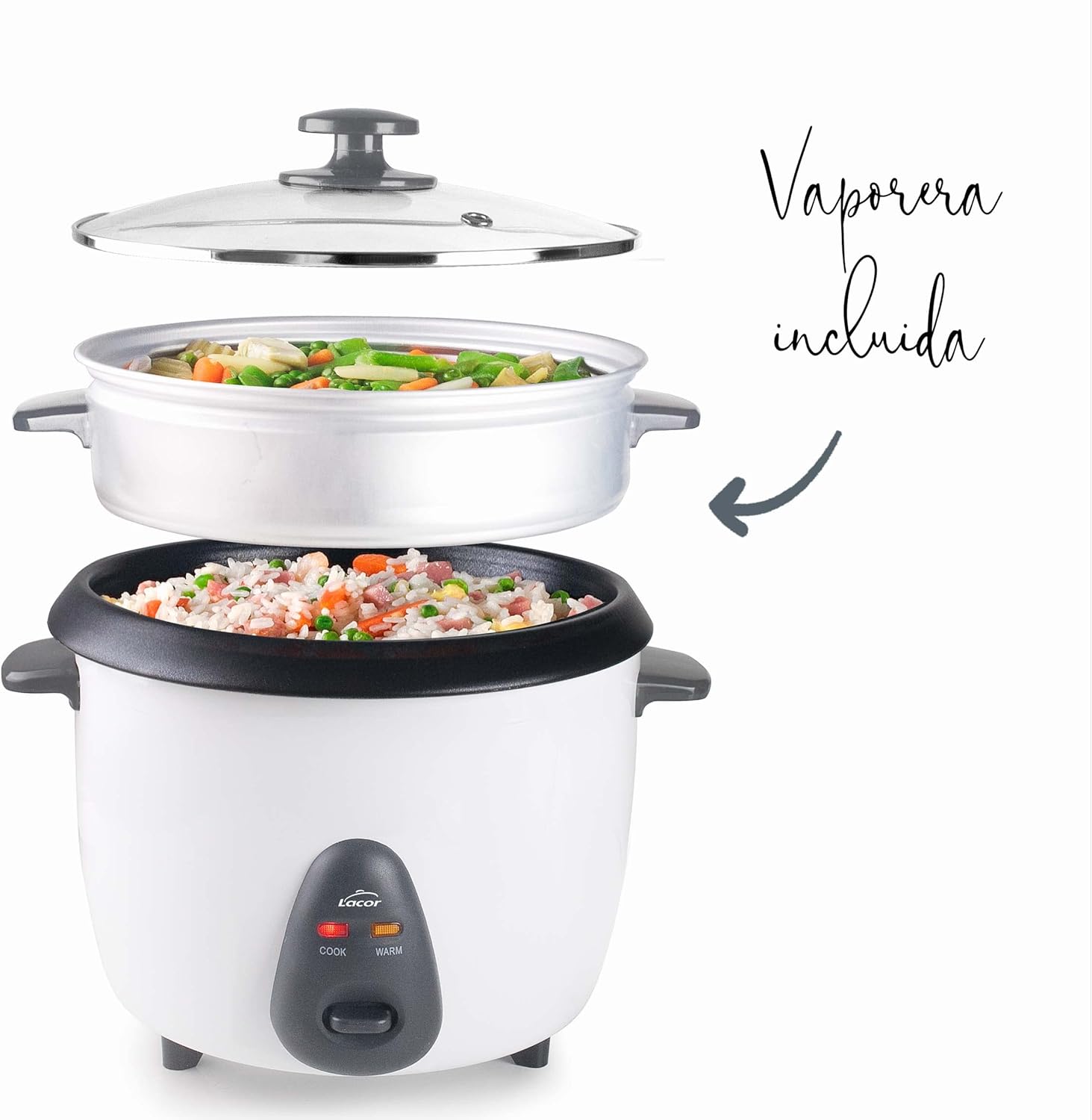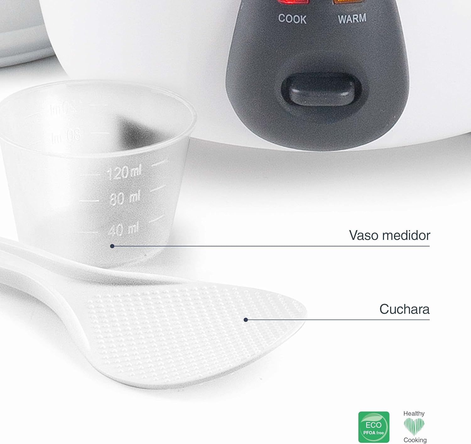 - Función de conservación del calor y protección contra la ebullición en seco con luces indicadoras para cocinar y mantener caliente.