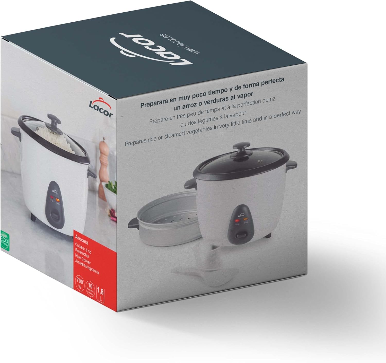 - Abnehmbarer Inneneimer von 1,8 L mit 100% ECO Antihaftbeschichtung und frei von PFOA und seinem abnehmbaren Dampfkorb zum Kochen von Gemüse, Kartoffeln, Fisch usw.