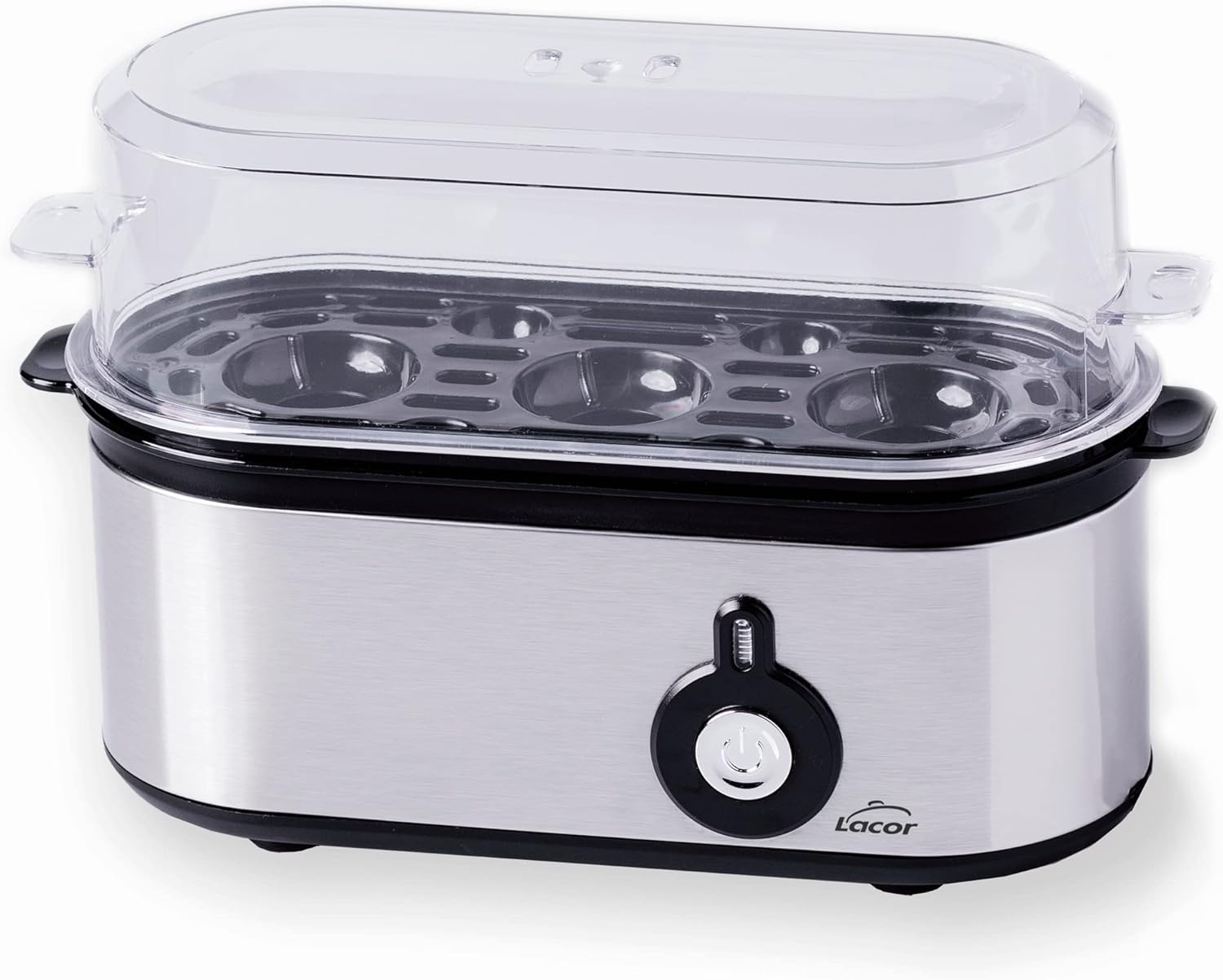 - Lacor - 69343 - Eierkocher TRI OVUM, Edelstahl 18/10, 100% BPA-frei, 3 Kochstufen: Hart, Mollet, Wasser durchgelassen, Kapazität: 3 Eier, automatische Abschaltung, 20,2 x 8,6 x 13,5 cm, Grau
