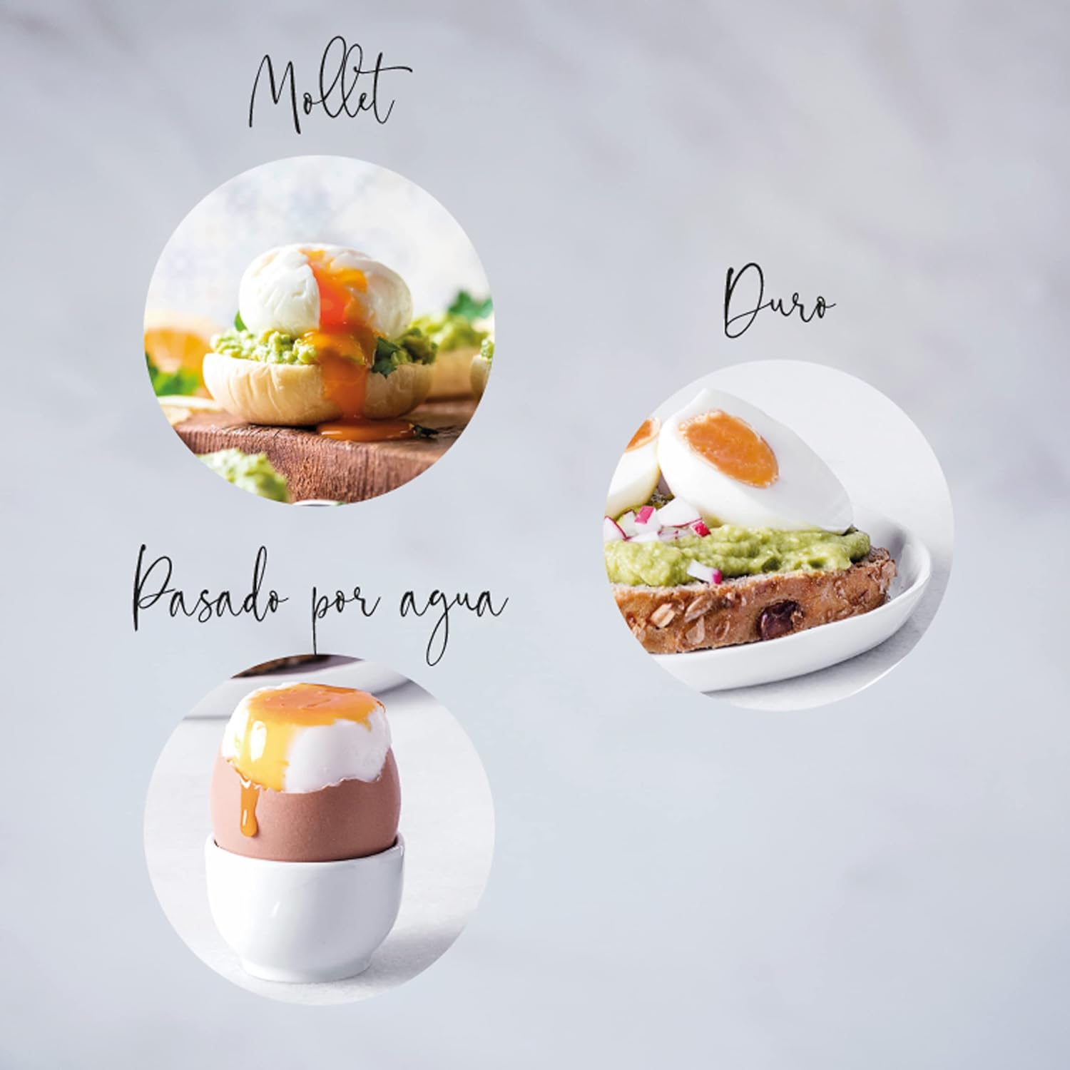 - Sie sind entworfen, um Eier in verschiedenen Grössen und in 3 verschiedenen Formen zu kochen: hartes Ei, Mollet oder geschmolzenes Ei zu kochen. Sie können bis zu 3 Eier gleichzeitig kochen
