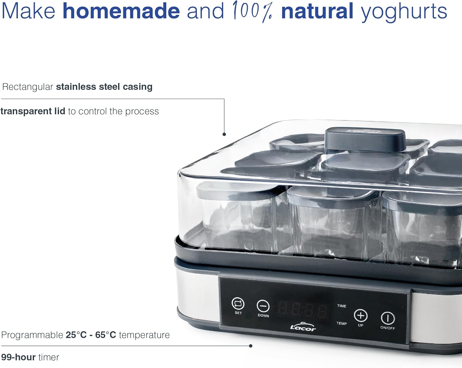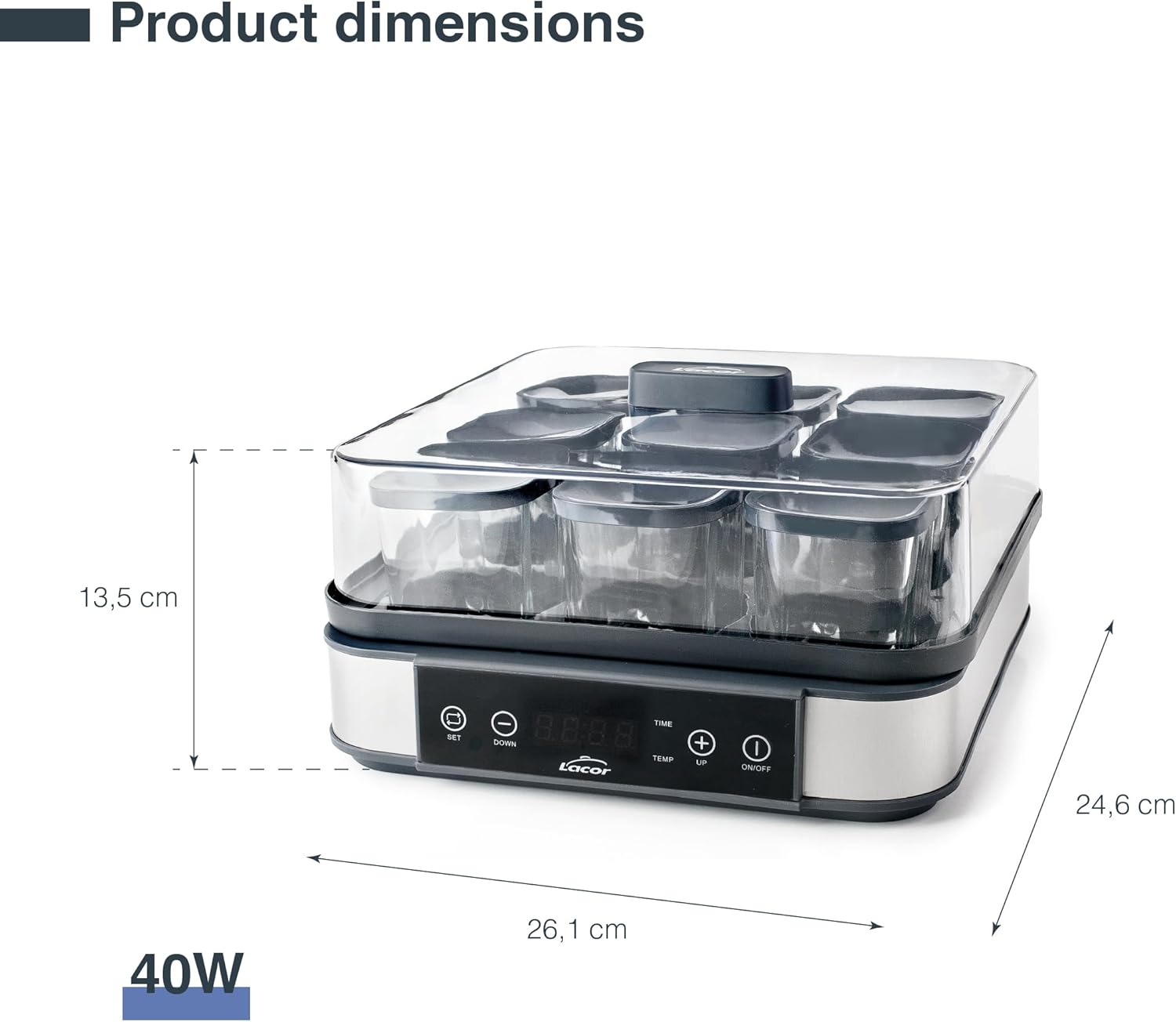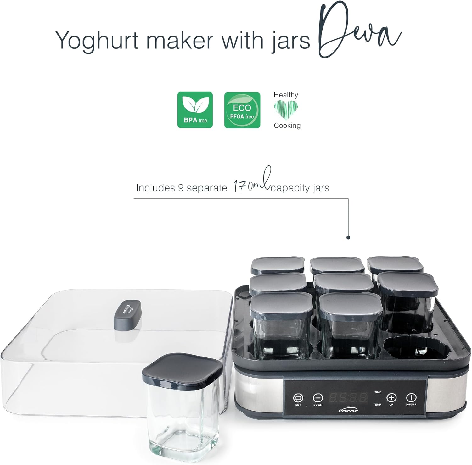 - Ideal für die Zubereitung von leckeren, natürlichen und gesunden hausgemachten Joghurts. Enthält 9 herausnehmbare Gläser mit luftdichtem Deckel (Fassungsvermögen 9x170 ml).
