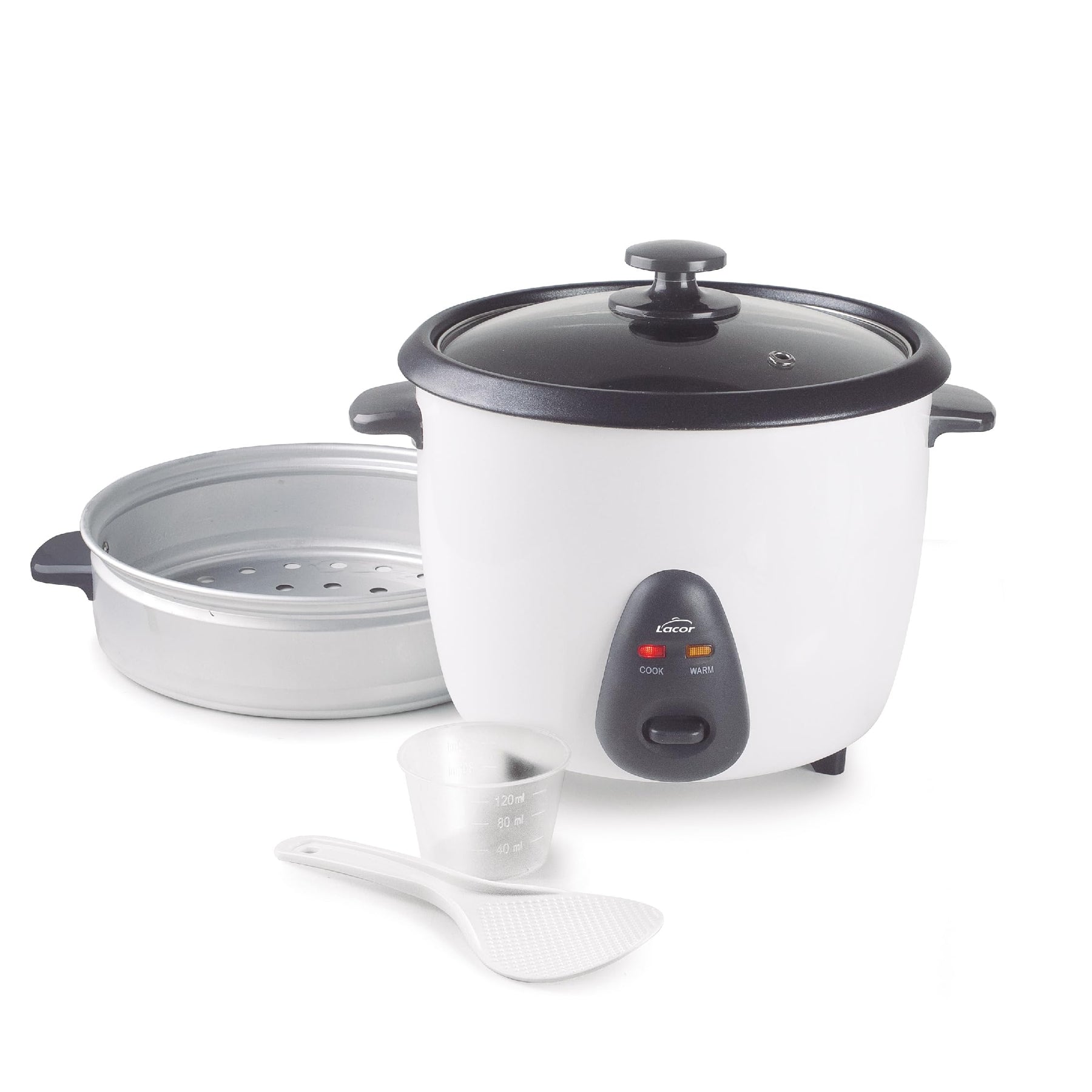 Lacor - 69441 - Elektrischer Reiskocher 1 L, 5 Portionen, ECO Antihaftbeschichtung, Glasdeckel, Kont