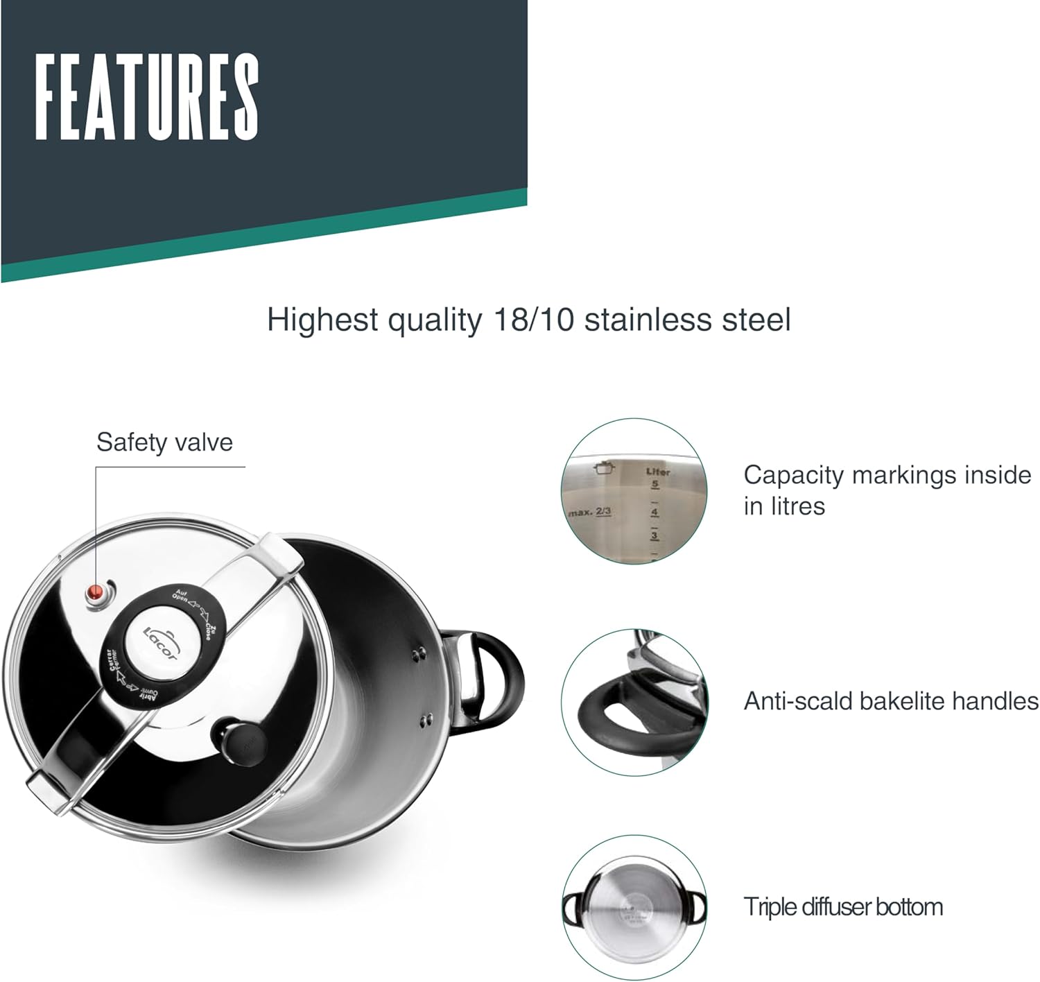 Lacor 71874 Drucktopf Classic mit Deckelgriff 4 L
