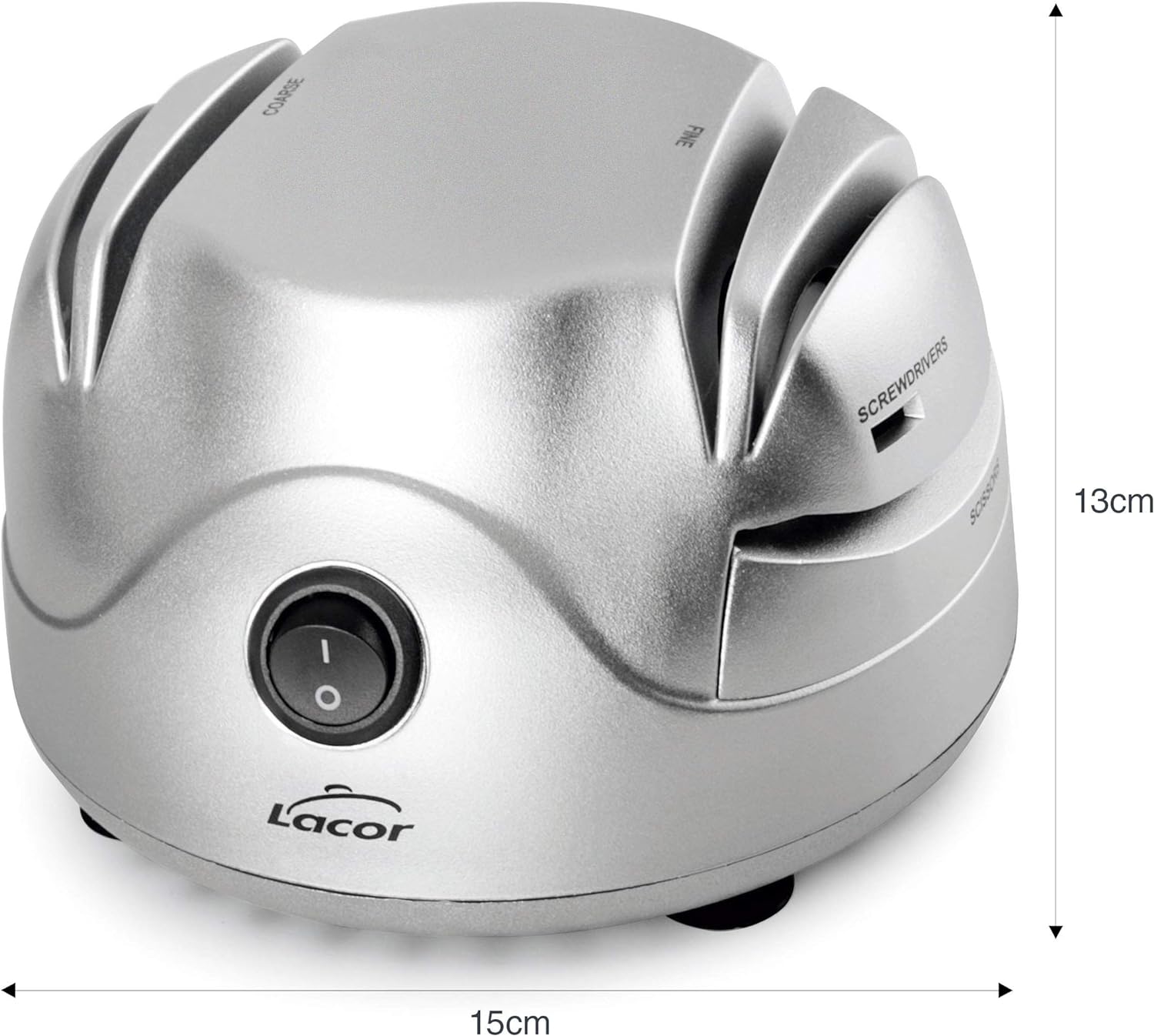 - Elektrischer Messerschärfer, der es ermöglicht, die Utensilien in einwandfreiem Zustand zu halten. Es ist einer der erfolgreichsten Artikel im Lacor-Katalog dank seiner Anspannung und Robustheit. Es bietet alle Garantien einer Marke von Pre-Site und macht Ihren Kauf eine sehr positive Erfahrung.
