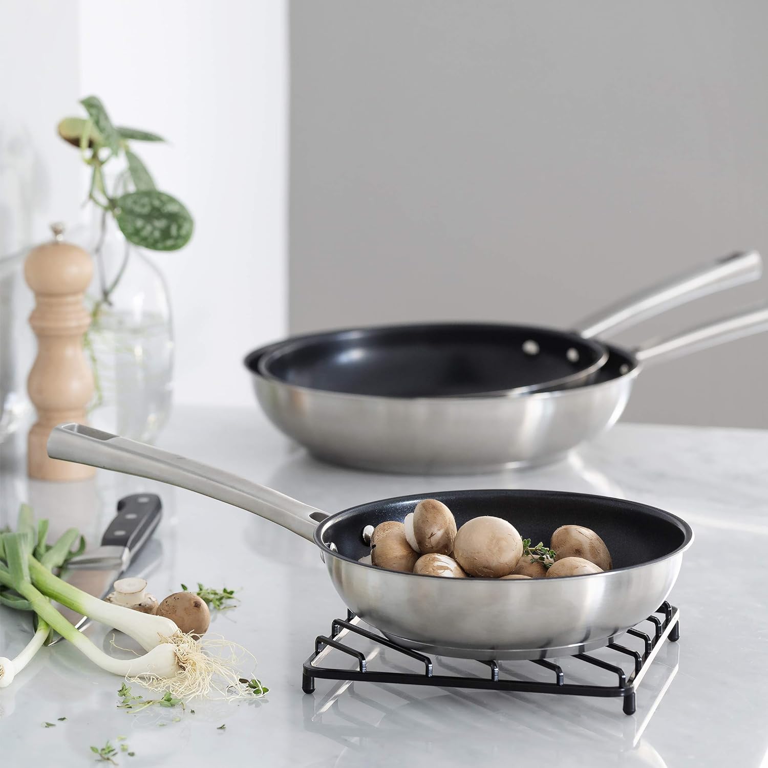 - Hergestellt aus 18/10 Edelstahl mit dreischichtiger Quantanium-Antihaftbeschichtung