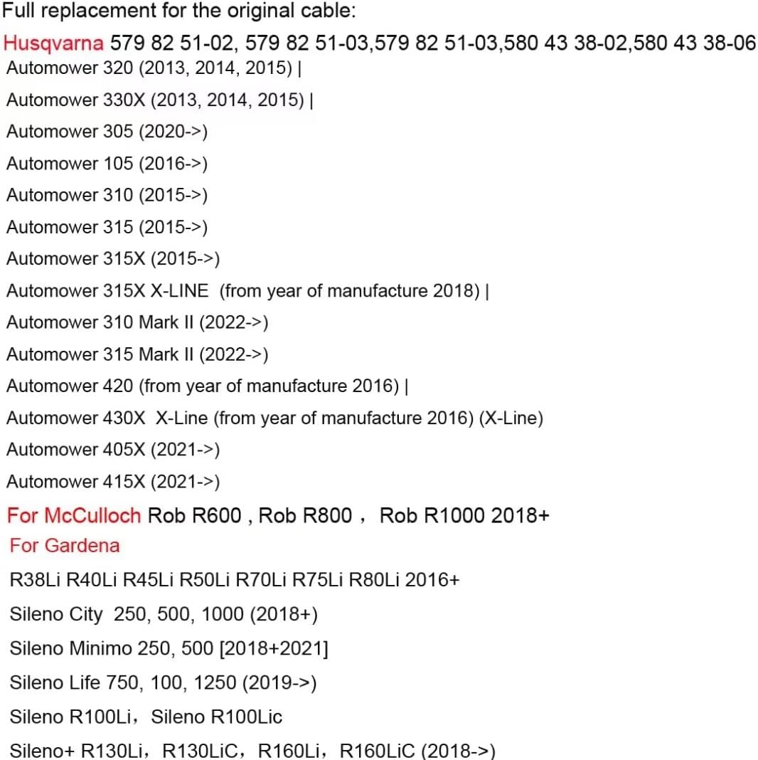 - Vollständiger Ersatz für das Originalkabel:579 82 51-02, 579 82 51-03,580 43 38-02,580 43 38-03, 580 43 38-06.- Doppelt isoliertes Kabel. Kupferdraht. Wasserdicht und langlebig. Kabel kann im Rasen eingegraben werden