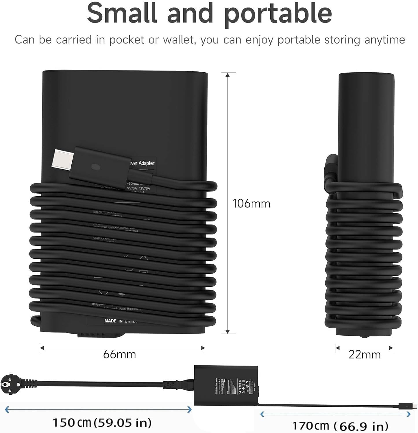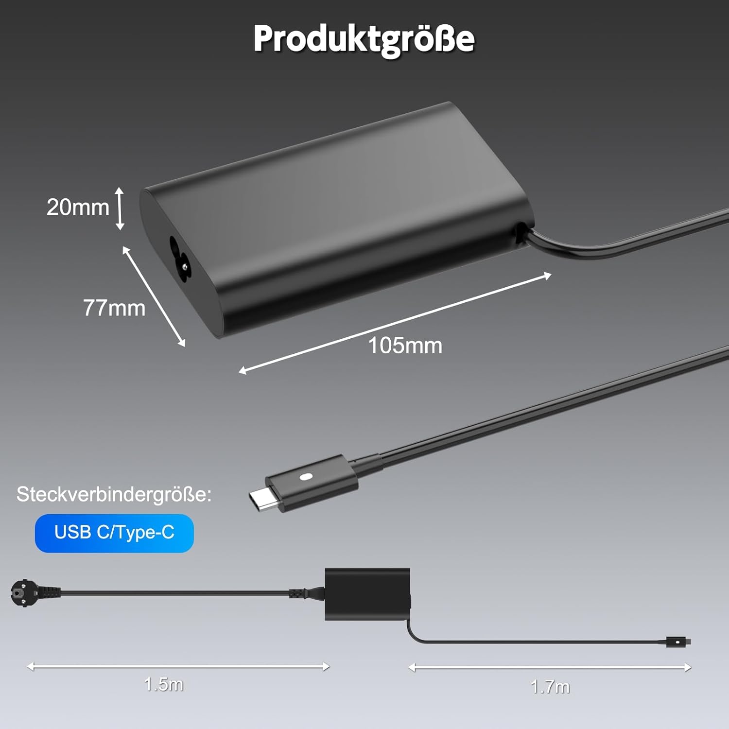 - ✅【Netzteil für Dell USB-C 65 Watt】Eingang: 100-240V 50-60Hz; Ausgang: 5V/3A,9V/3A,15V/3A,20V/2.25A,20V/3.25A 65W, Kompatibel mit 20V/2.25A 45W; Anschlussgrösse: USB C / Type C