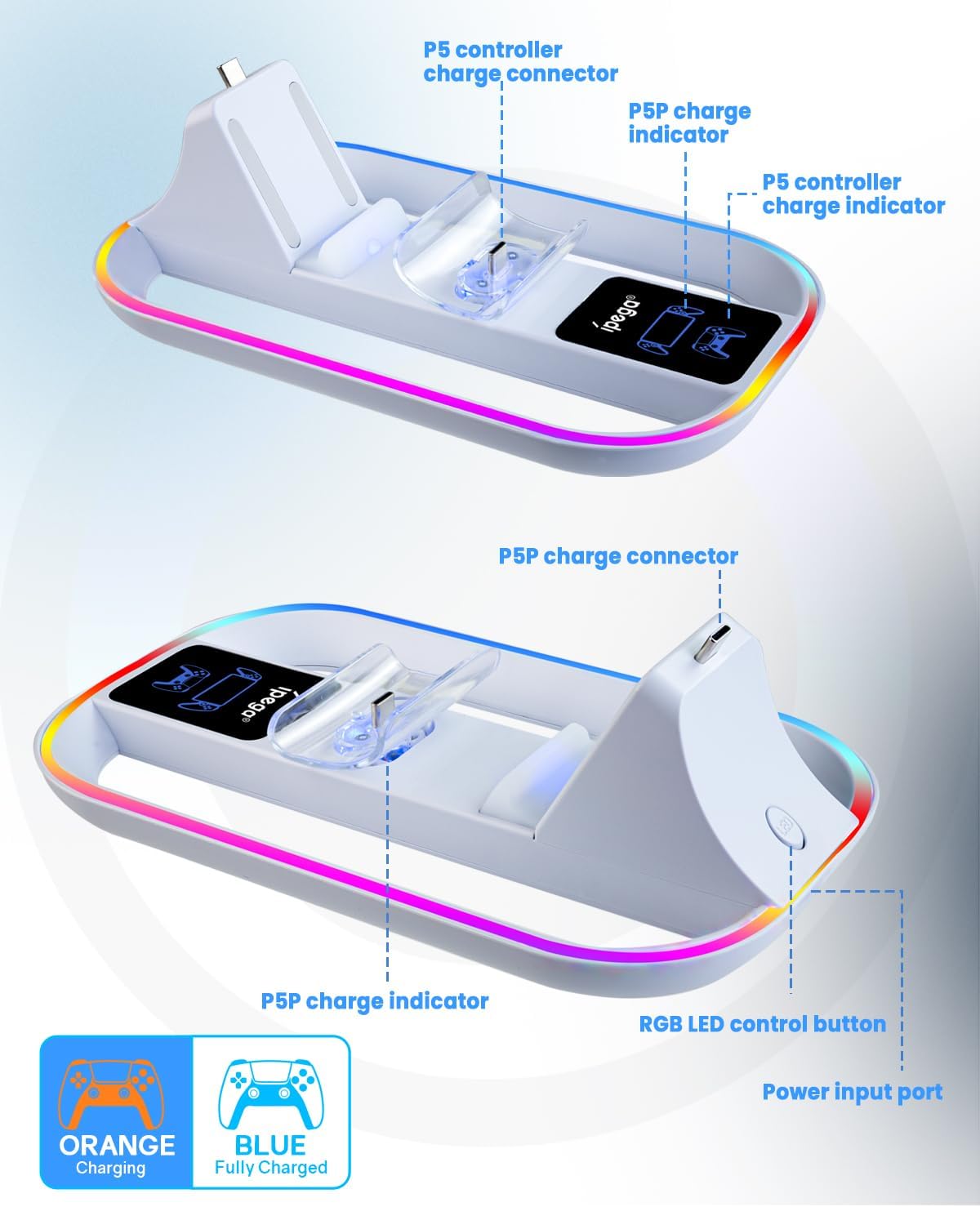 - Entwickelt für PS Portal: PS Portal Ladestation speziell für das PS Portal entwickelt wurde, verfügt über eine Ladekontrollleuchte, um den Ladestatus leicht zu erkennen. Ein orangefarbenes Licht zeigt den Ladevorgang an und ein blaues Licht zeigt
