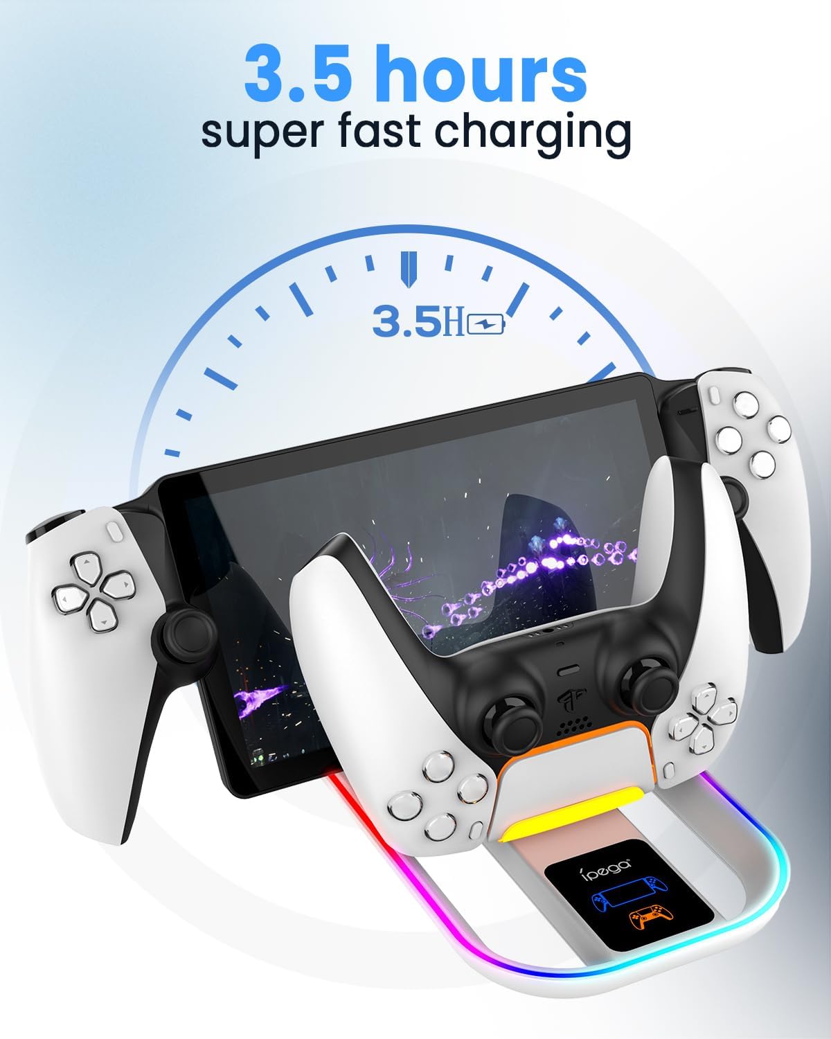 - Platzieren und aufladen:Ständer und Ladegerät 2-in-1, wenn es nicht aufgeladen wird, kann es als Ständer für Desktop-Spielkonsolen verwendet werden. Sorgt dafür, dass Ihr PS Portal-Remote-Player und PS5 controller organisiert und leicht zu