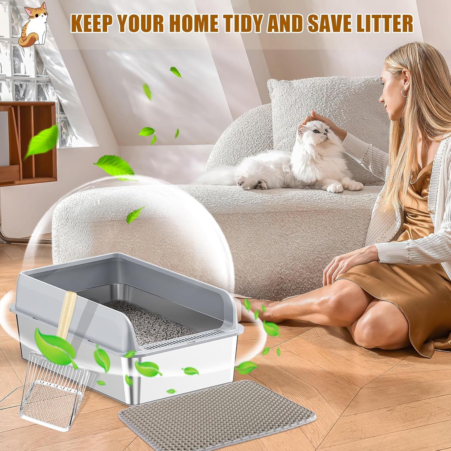 - Praktisches Zubehör für einfache Reinigung: Im Set enthalten sind eine robuste Edelstahl-Katzenstreuschaufel und eine spezielle Matte, die Streu von den Pfoten Ihrer Katze auffängt. Damit wird die Reinigung zum Kinderspiel und dauert nur wenige