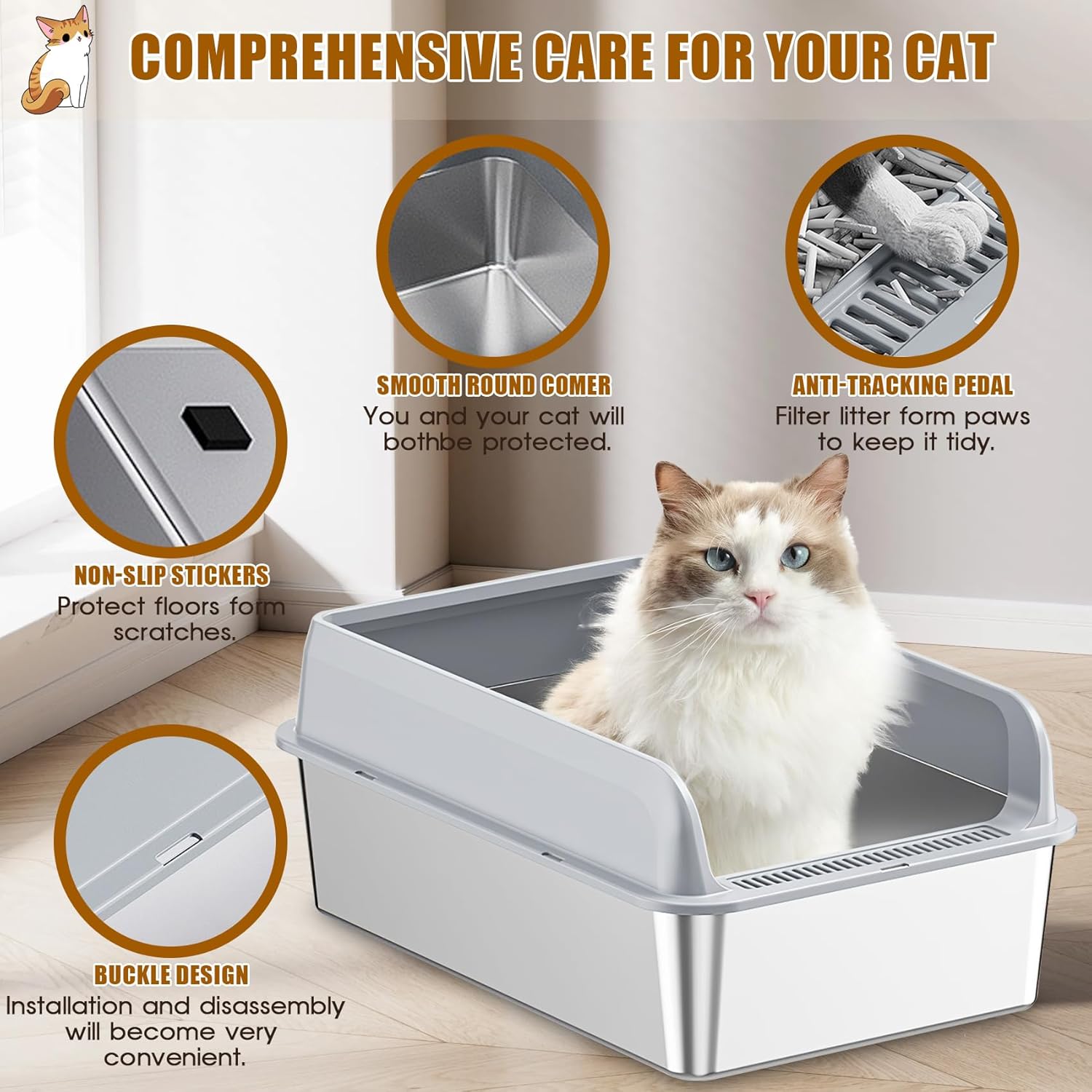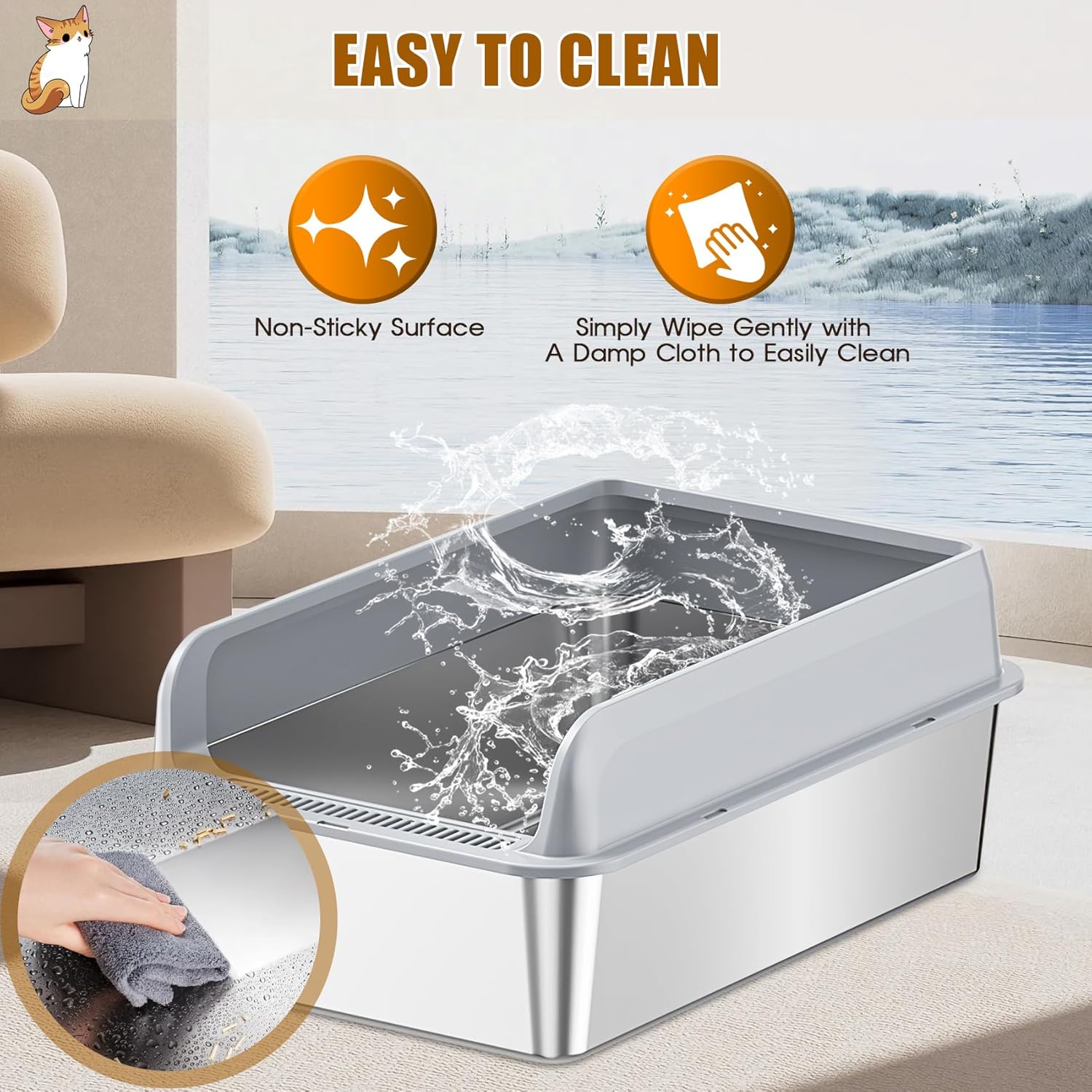 - Langlebiger Edelstahl für gesunde Katzen: Unser Katzenklo aus hochwertigem Edelstahl bietet eine gesunde Umgebung für Ihre Katze. Im Vergleich zu herkömmlichen Materialien bleibt die Katzentoilette geruchlos und ist leicht zu reinigen. Die spezielle