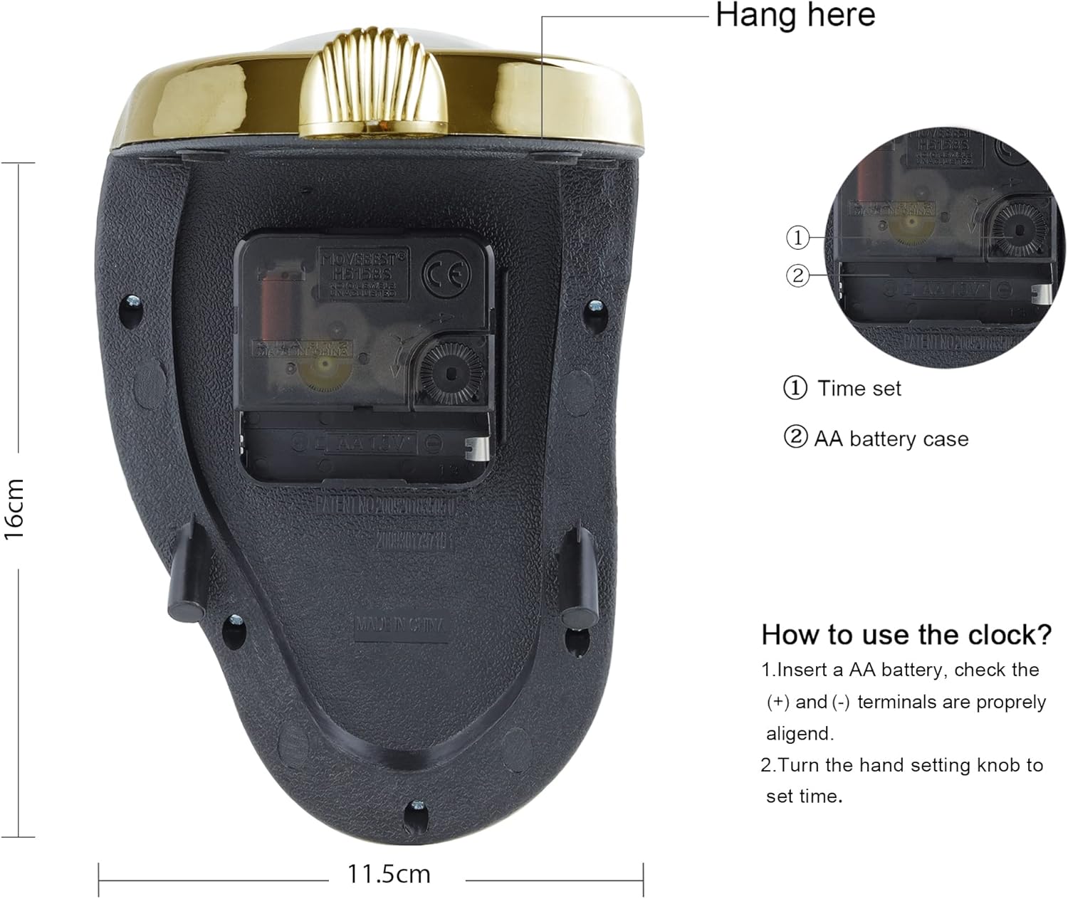 - Hohe Genauigkeit: Es wird mit 1 AA Batterie betrieben. Das hochwertige Quarzwerk garantiert präzise Zeit. (Hinweis: Batterie ist nicht im Lieferumfang enthalten.)