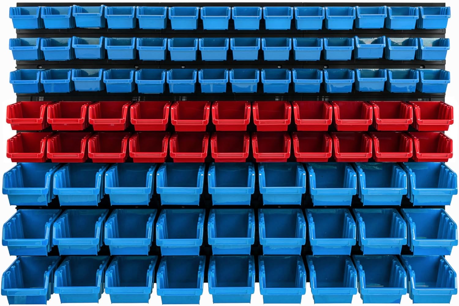 - Stapelboxen: 42 Stück 80 x 115 x 60 mm Blau + 22 Stück 100 x 155 x 70 mm Rot + 27 Stück 120 x 195 x 90 mm Blau