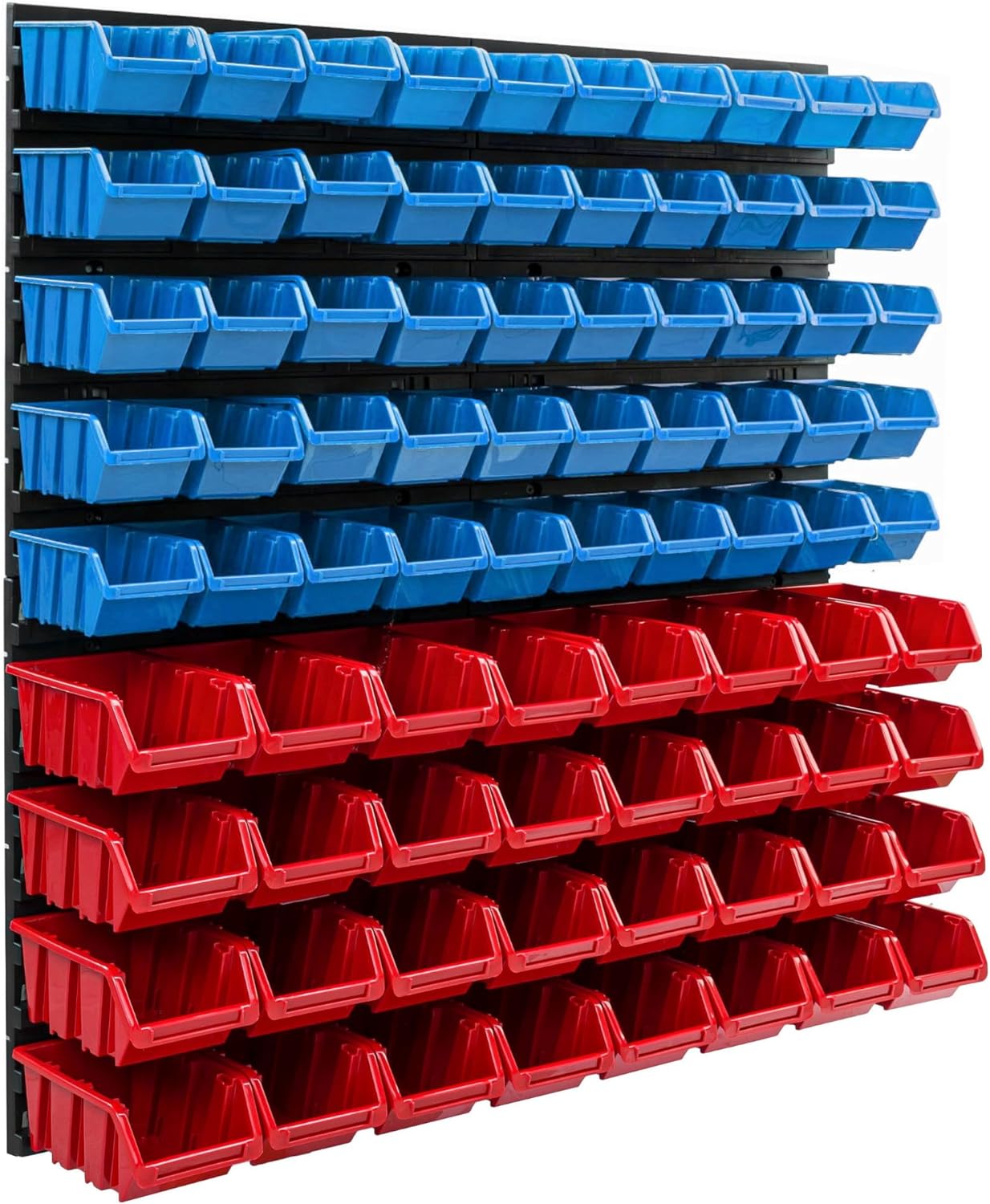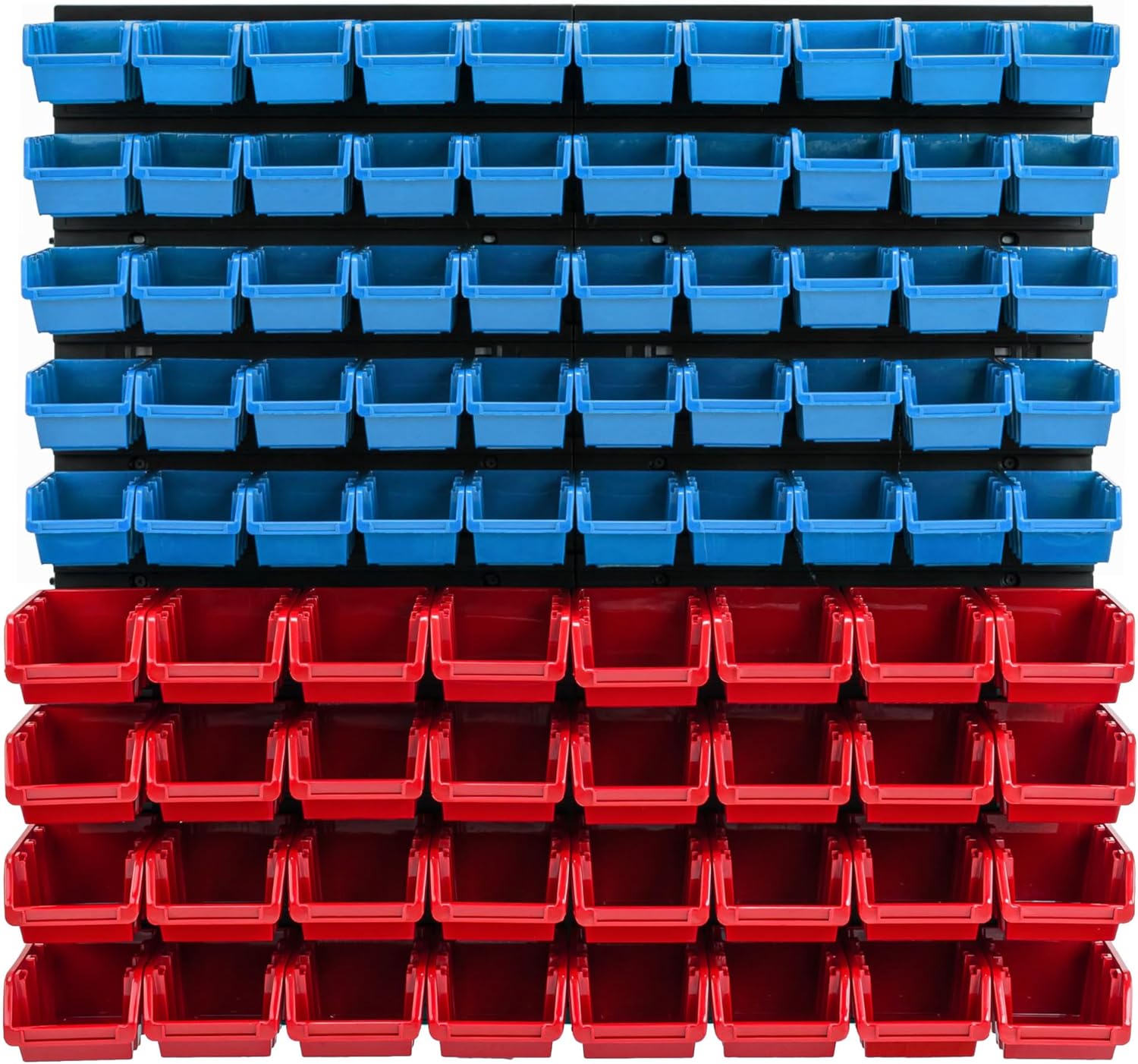 - Stapelboxen: 50 Stück 80 x 115 x 60 mm Blau + 32 Stück 100 x 155 x 70 mm Rot