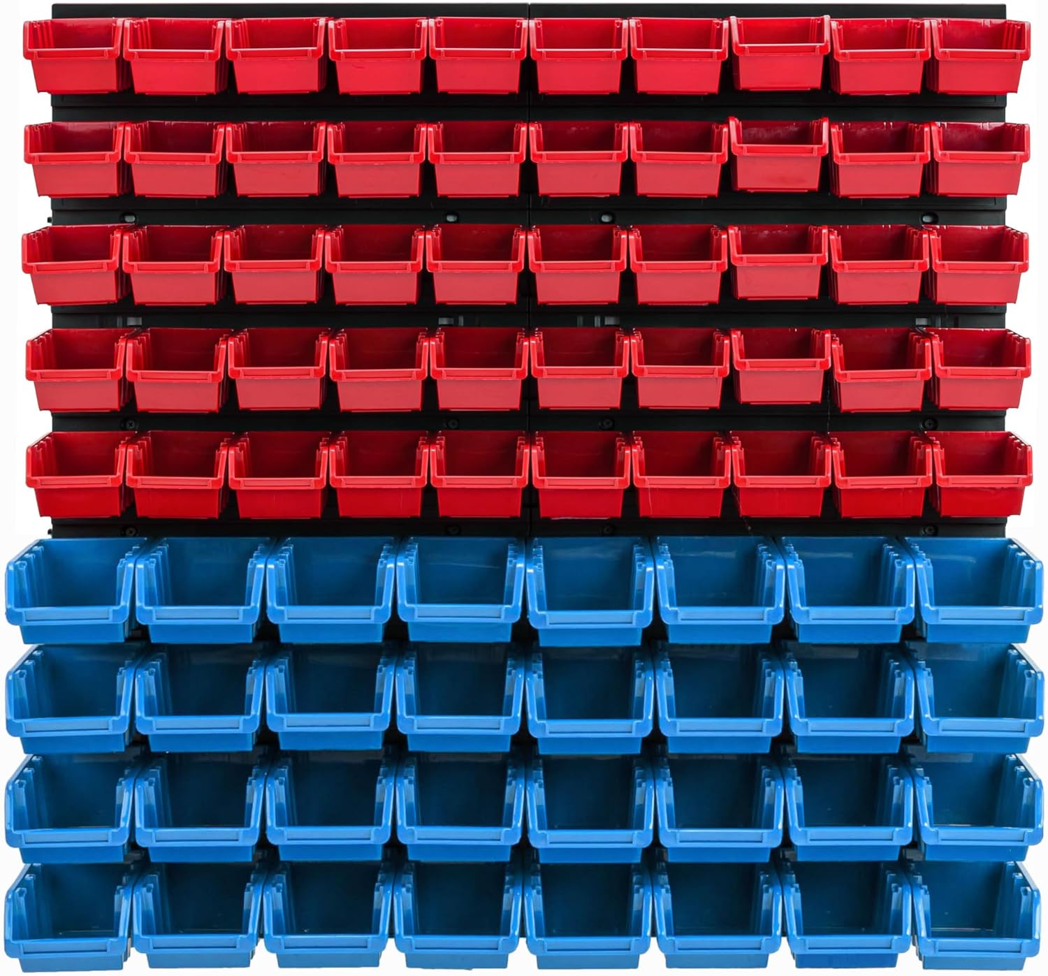 - Stapelboxen: 50 Stück 80 x 115 x 60 mm Rot + 32 Stück 100 x 155 x 70 mm Blau